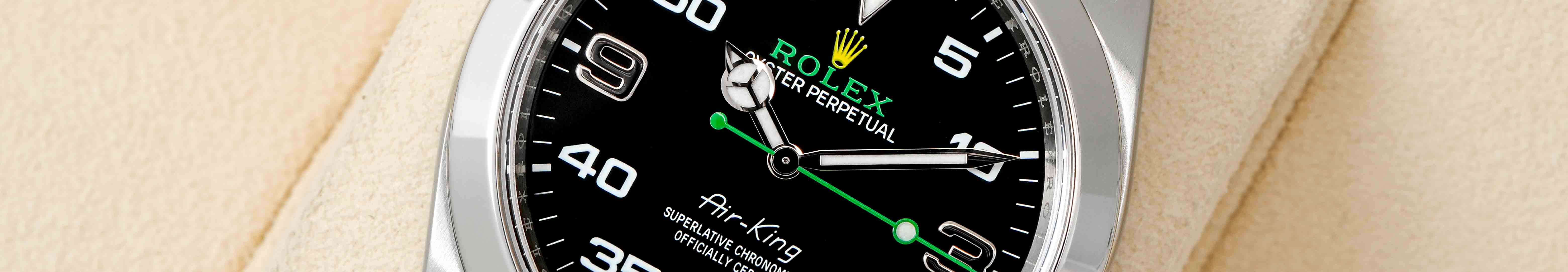 Rolex Air-King jsou sportovní luxusní hodinky inspirované letectvím, které kombinují výrazný číselník s minutovou stupnicí, robustní Oyster pouzdro a precizní automatický kalibr Rolex. Díky vysoké čitelnosti, odolné konstrukci a charakteristickému pilotnímu designu patří Air-King mezi vyhledávané mechanické hodinky Rolex pro každodenní nošení.