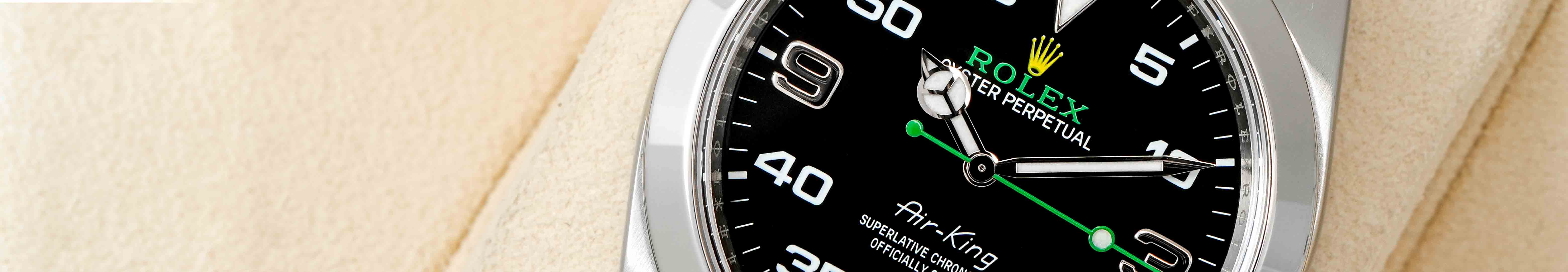 Rolex Air-King jsou sportovní luxusní hodinky inspirované letectvím, které kombinují výrazný číselník s minutovou stupnicí, robustní Oyster pouzdro a precizní automatický kalibr Rolex. Díky vysoké čitelnosti, odolné konstrukci a charakteristickému pilotnímu designu patří Air-King mezi vyhledávané mechanické hodinky Rolex pro každodenní nošení.