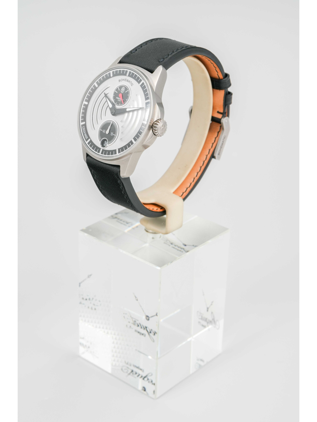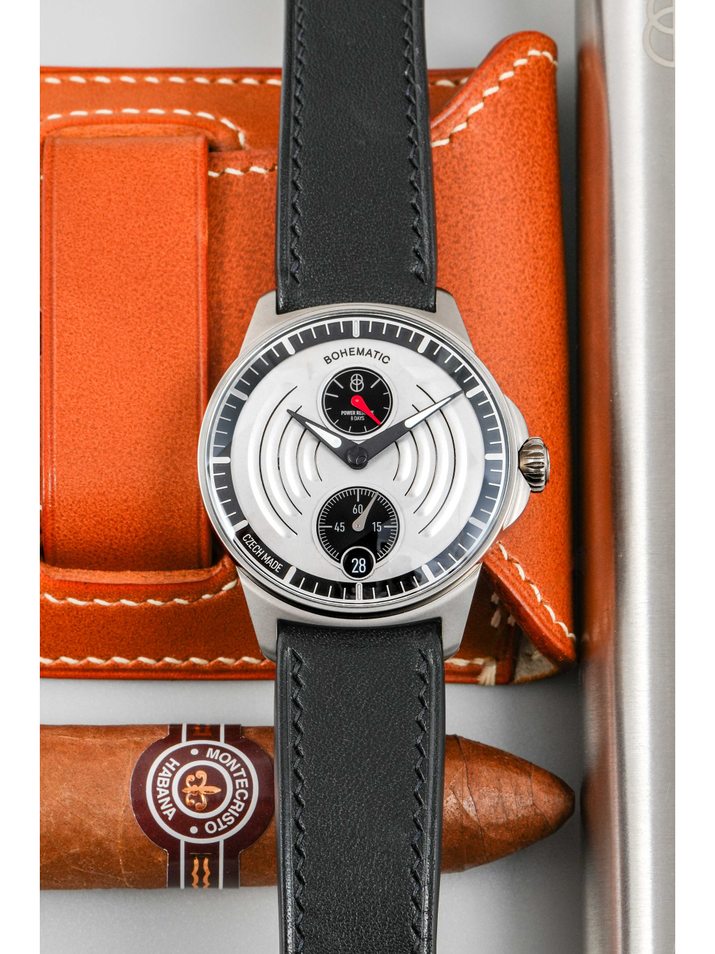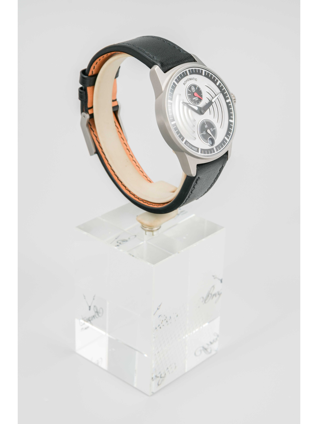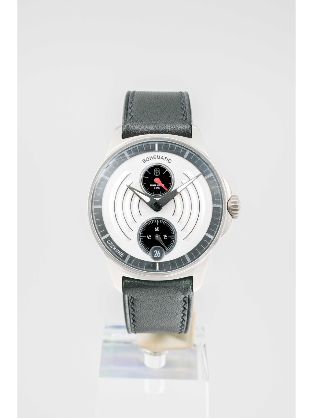 ROBOT Aerodynamic patří mezi nejvýraznější současné české hodinky inspirované funkcionalismem, aerodynamikou a estetikou 30. let. Model v provedení Silver Metallic zaujme čistými liniemi, technickým výrazem a dokonale vyváženými proporcemi. Tento konkrétní kus je navíc výjimečný tím, že pochází z rané produkce značky, kdy hodinky ještě nesly původní jméno BOHEMATIC – detail, který z něj činí sběratelsky zajímavější a dnes již raritní variantu.