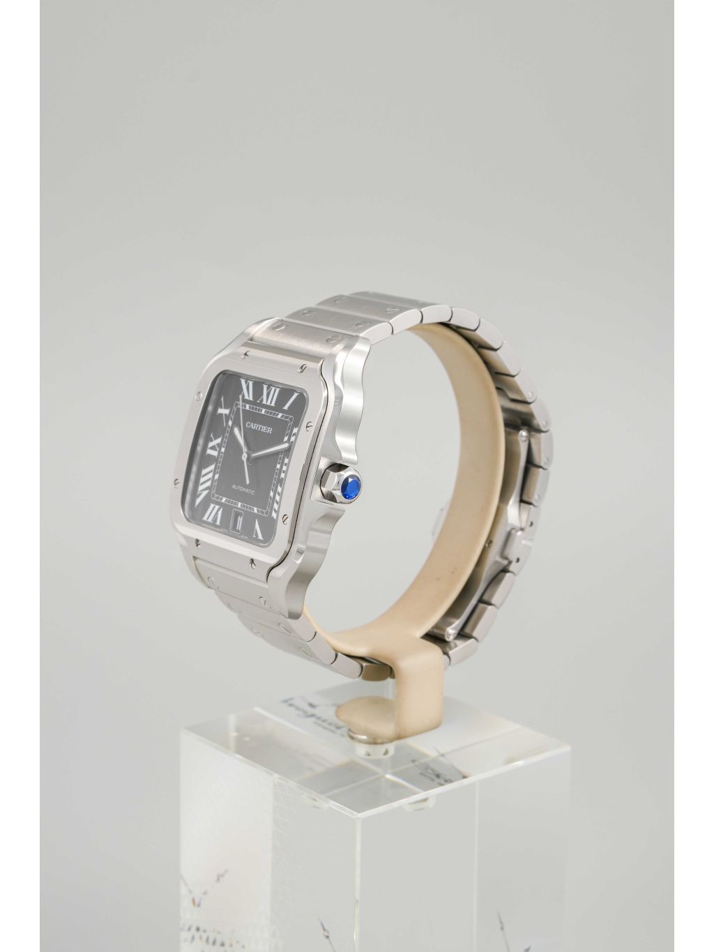 Cartier Santos de Cartier Large představuje moderní podobu jednoho z nejikoničtějších modelů v historii hodinářství. Kolekce Santos, původně vytvořená pro aviátora Alberta Santose-Dumonta, dodnes ztělesňuje spojení elegantního designu, technické jednoduchosti a každodenní praktičnosti. V této konfiguraci s černým číselníkem působí model výrazně současně a stylově.