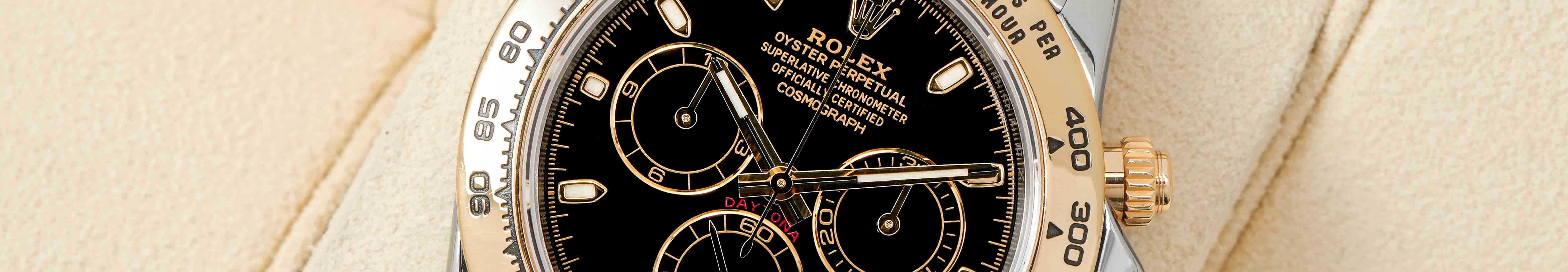 Rolex Daytona jsou ikonické luxusní chronografy navržené pro měření rychlosti díky tachymetrické lunetě a přesnému automatickému kalibru Rolex. Robustní Oyster pouzdro, sportovní design a vysoká přesnost dělají z modelu Cosmograph Daytona jedny z nejvyhledávanějších mechanických hodinek Rolex spojených se světem motorsportu.