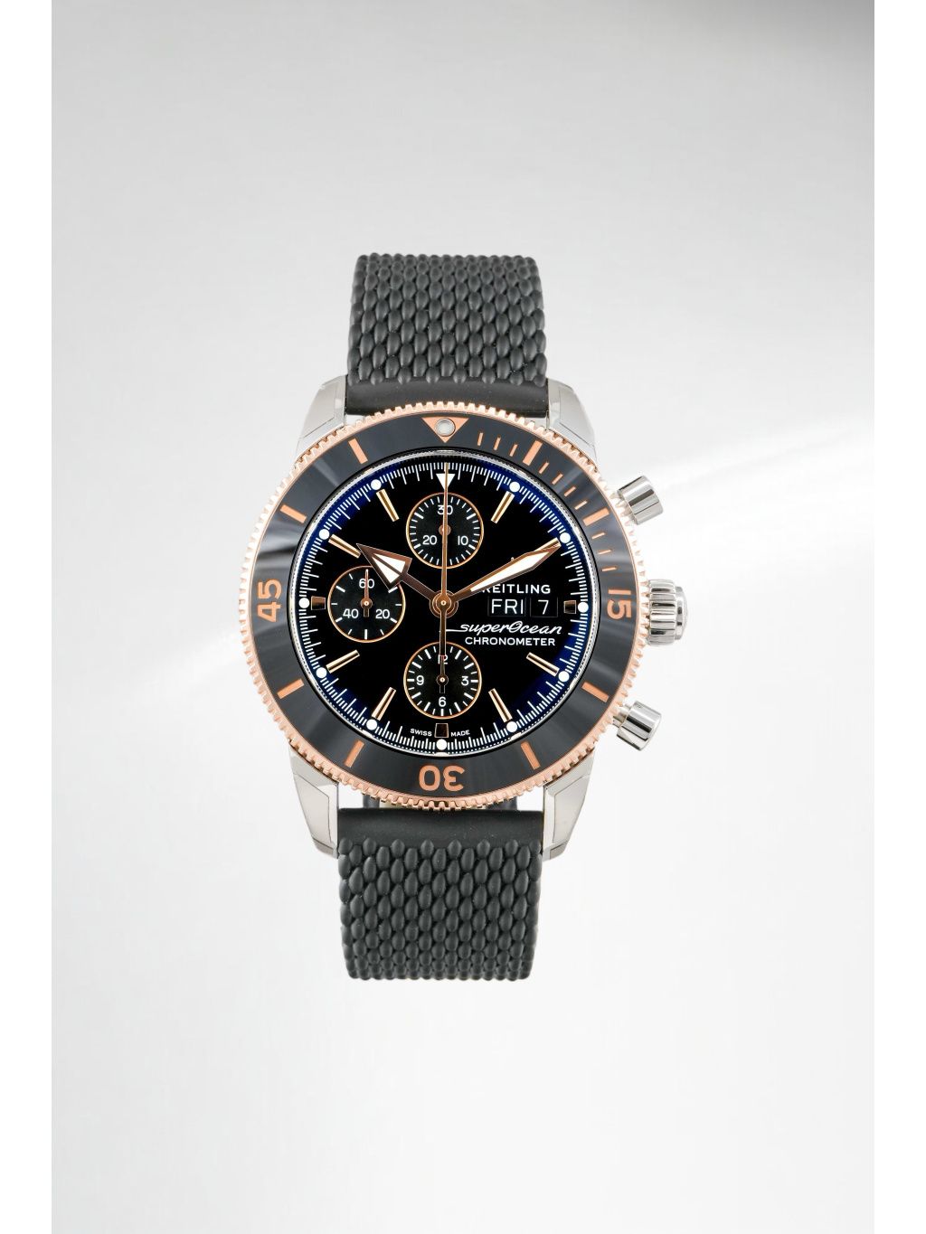 The Breitling Superocean Heritage Chronograph 44 is the ideal choice for those seeking a diver’s watch with a chronograph, a retro design, and a more luxurious finish thanks to the combination of steel and rose gold.