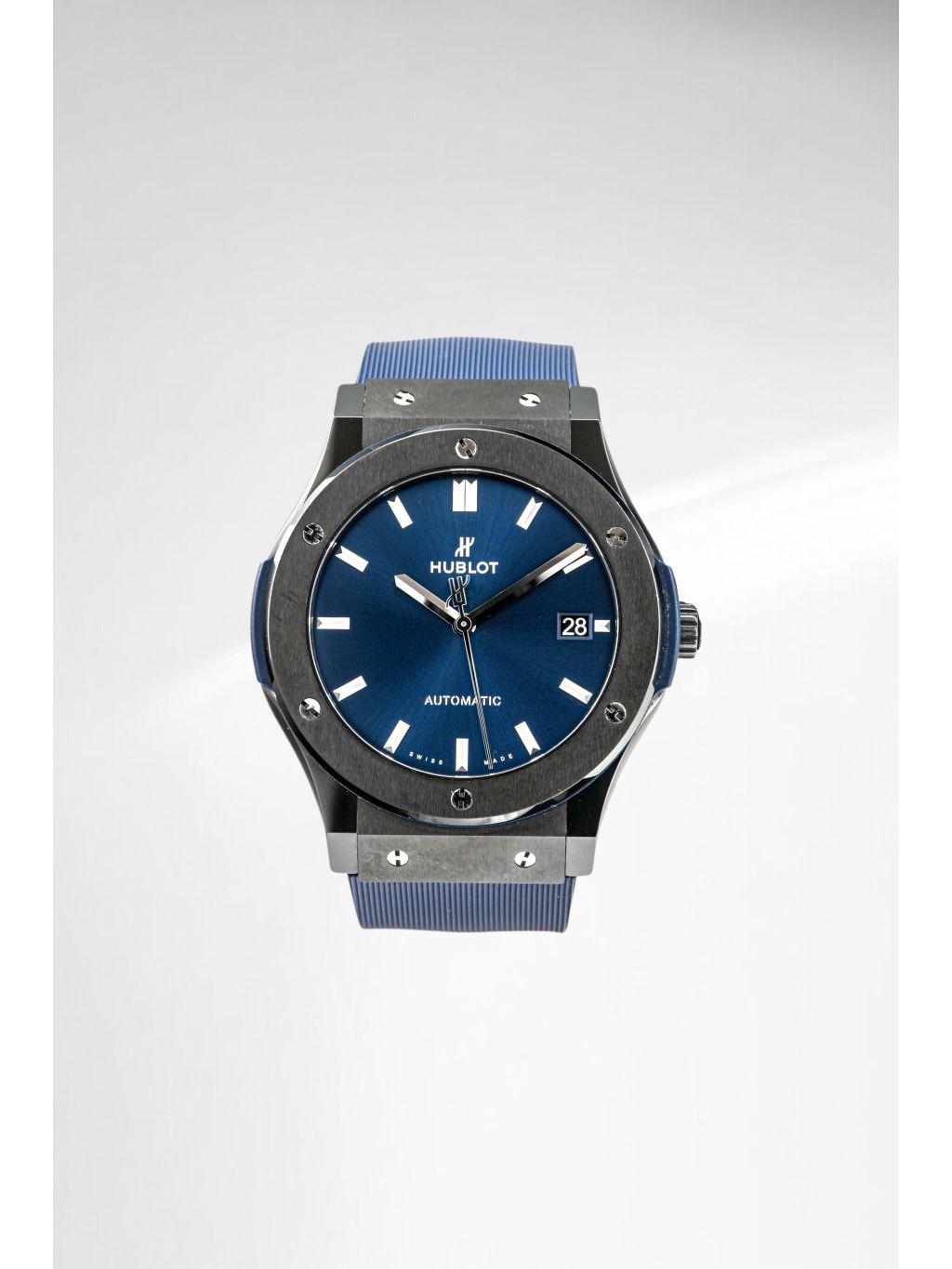 The Hublot Classic Fusion represents a cleaner, more elegant side of the Hublot brand, built on a combination of modern materials and minimalist design. Compared to the brand’s more robust models, this collection has a more subtle and versatile feel, while retaining signature elements such as the distinctive screw-mounted bezel and an emphasis on contrasting materials.