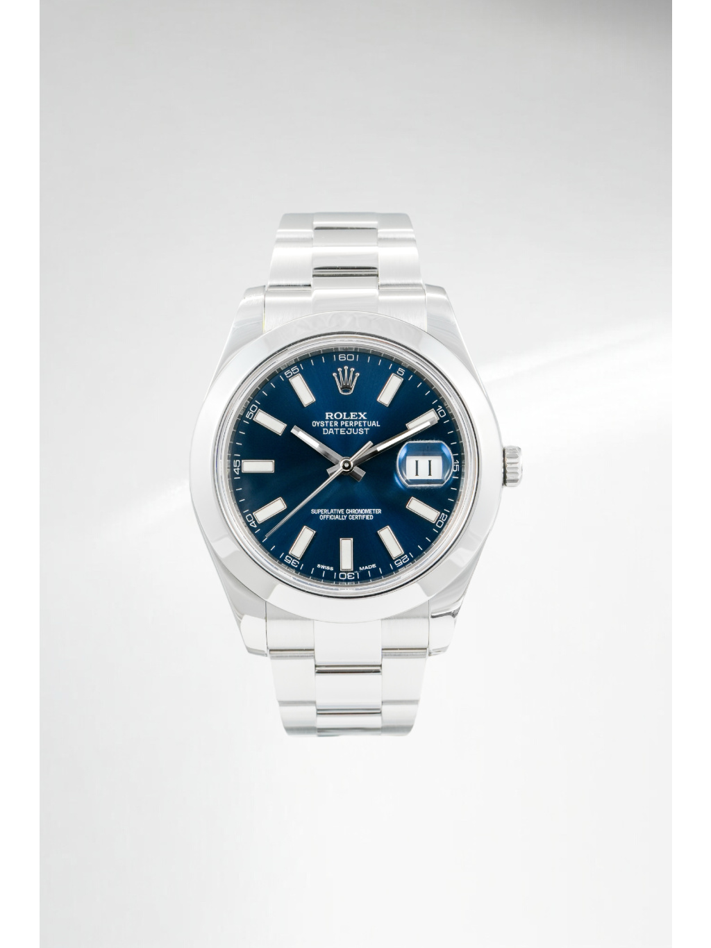 The Rolex Datejust II 116300 with a blue dial and Oyster bracelet gives the model a sportier and more distinctive character, while retaining the elegance typical of the Datejust series.