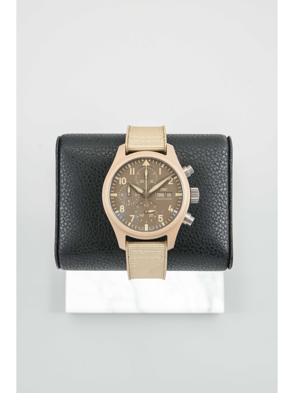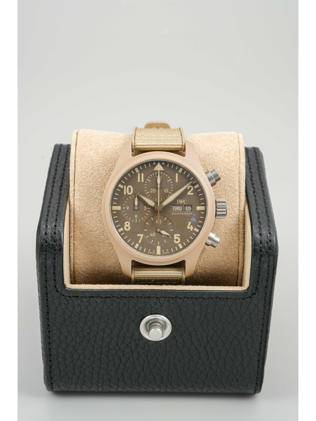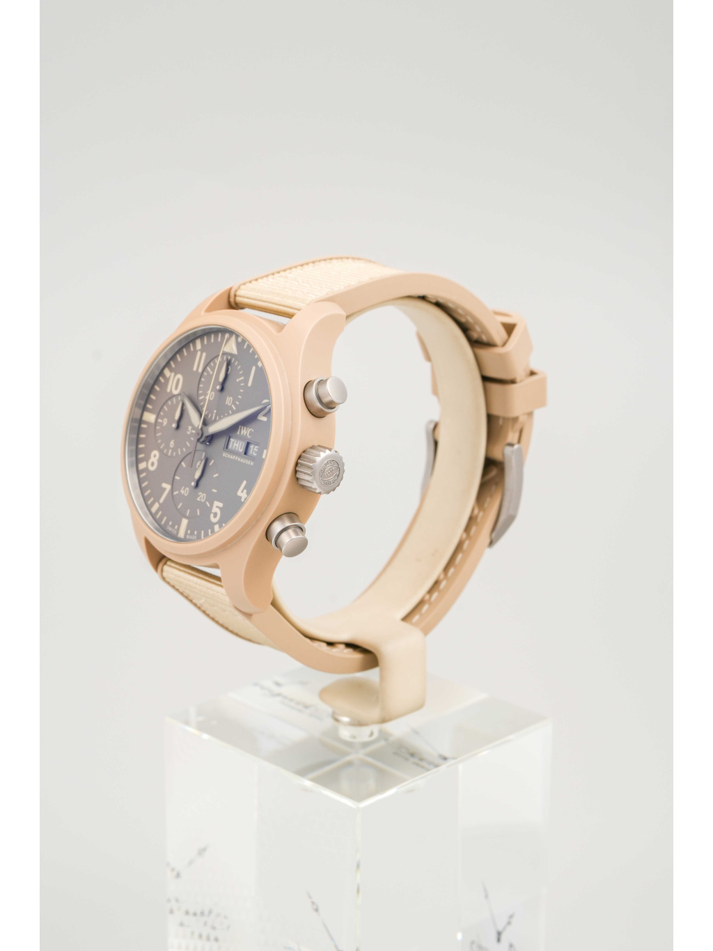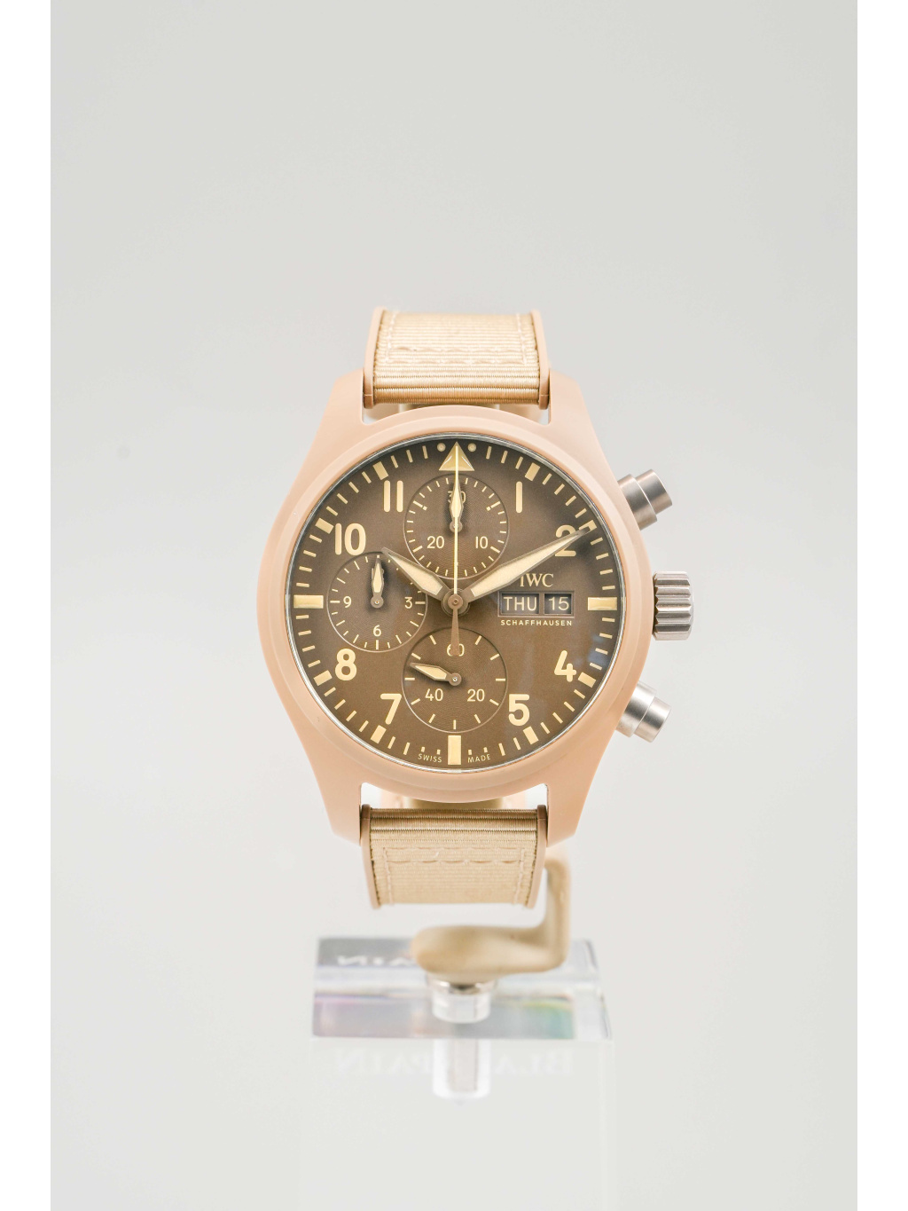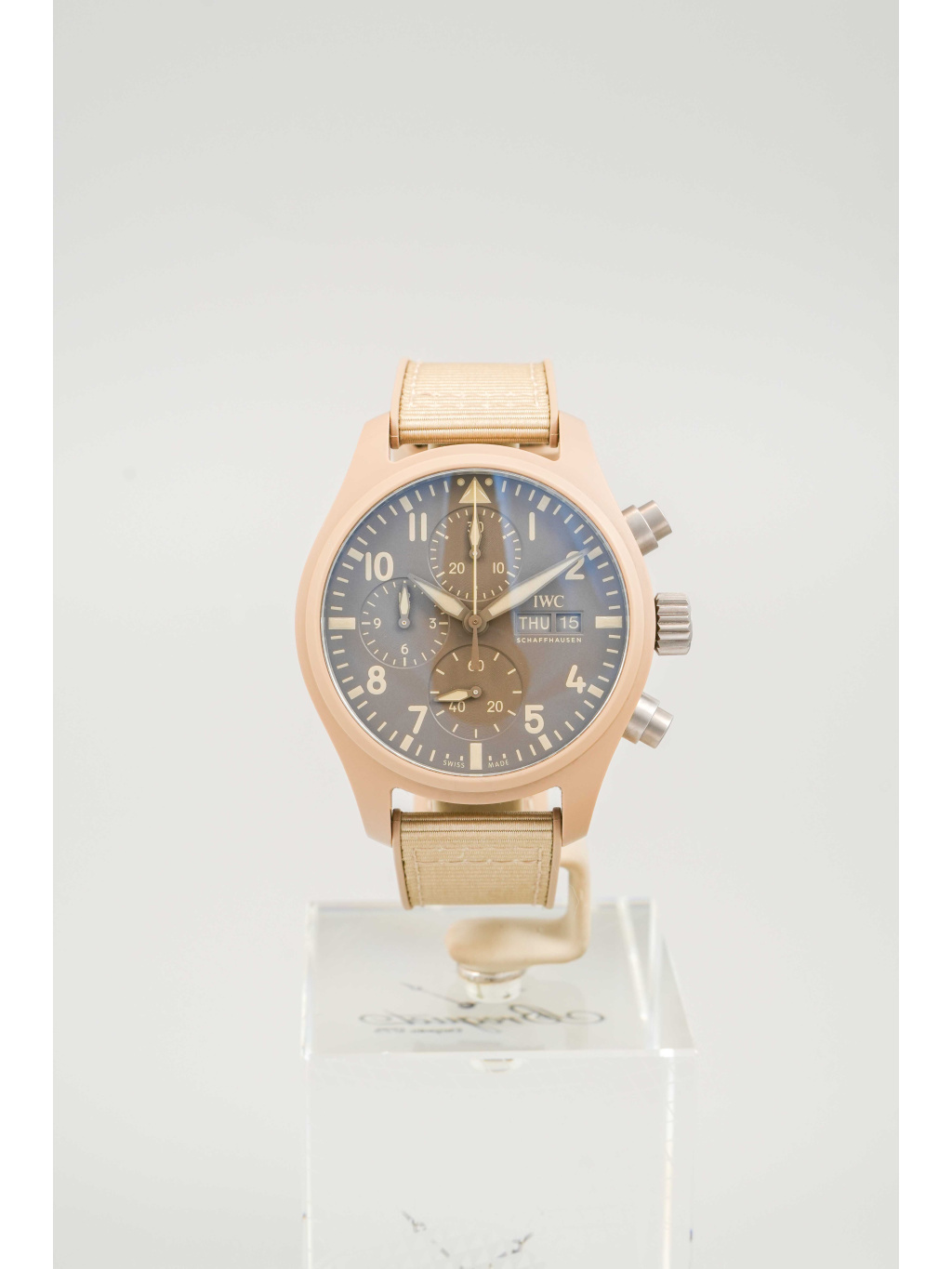 IWC Pilot’s Watch Chronograph 41 ve verzi TOP GUN Mojave Desert je moderní nástrojový chronograf s charakteristickým „sand“ vzhledem, inspirovaným pouštními odstíny a výstrojí námořních pilotů. Vizuálně je výrazný, ale stále čistě funkční – typicky pilotní IWC, jen v mnohem specifičtější, sběratelsky atraktivní konfiguraci.