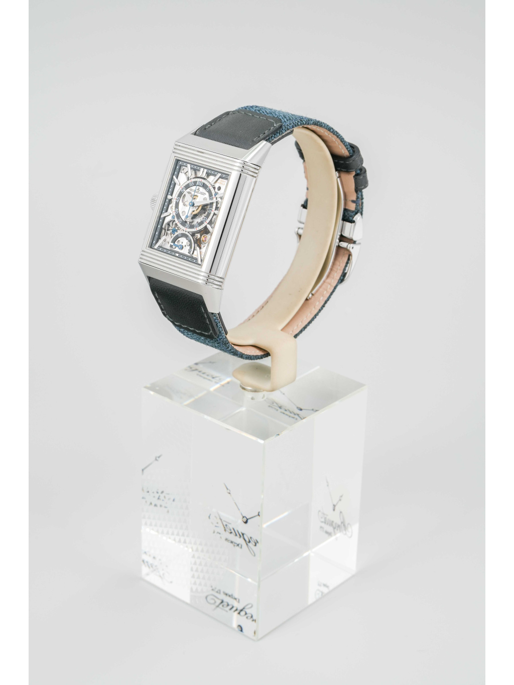 Jaeger-LeCoultre Reverso Tribute Chronograph Q389848J je mistrovskou kombinací historické elegance a současné techniky. Perfektní volba pro milovníky haute horlogerie, kteří ocení ikonický otočný design a komplikaci chronografu v jedinečném provedení.