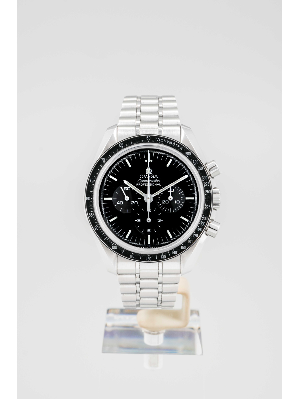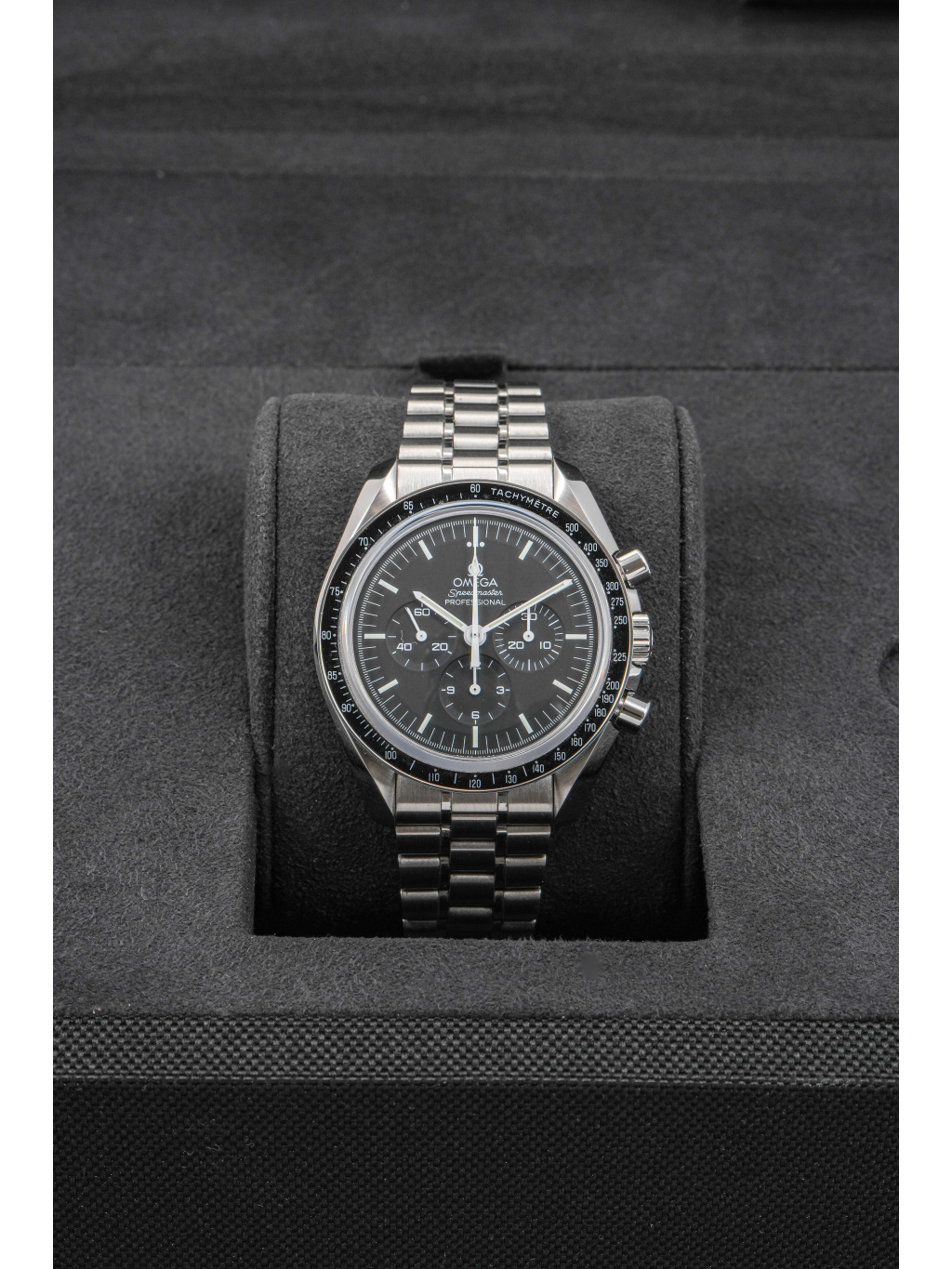 Omega Speedmaster Professional Moonwatch je jedním z nejikoničtějších chronografů v historii hodinářství. Model, který se stal oficiálními hodinkami NASA a doprovázel astronauty při pilotovaných misích na Měsíc, si zachovává autentický design, technickou přesnost a silný historický odkaz. Tato verze představuje klasický Moonwatch v modernějším provedení se safírovými sklíčky.