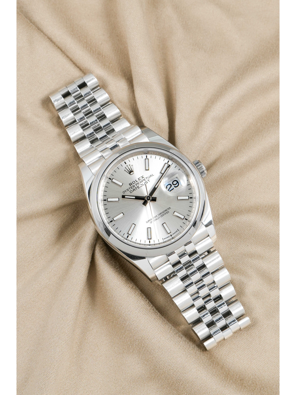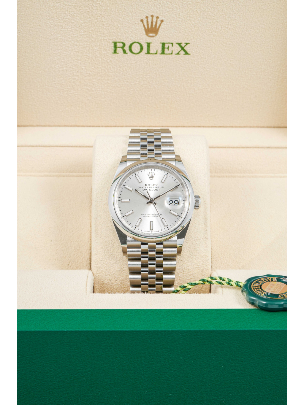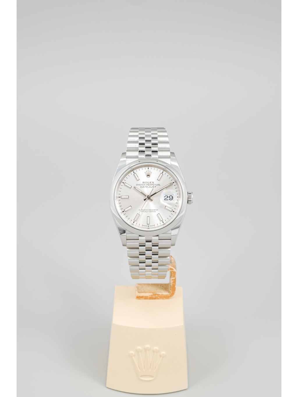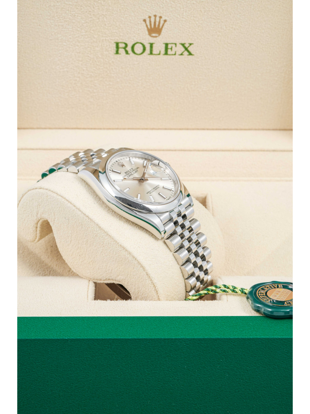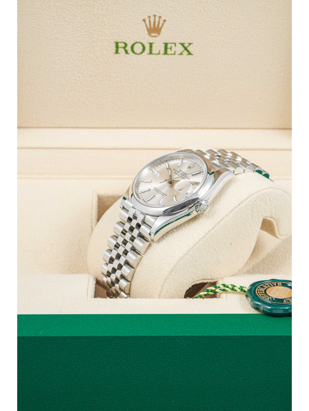 Rolex Datejust 36 je jedním z nejčistších a nejuniverzálnějších modelů celé kolekce Datejust. Tato varianta v celoocelovém provedení se stříbrným číselníkem působí elegantně, nadčasově a mimořádně vyváženě. Je ideální volbou pro ty, kteří hledají klasický Rolex s decentním vzhledem, jenž obstojí v každé situaci.