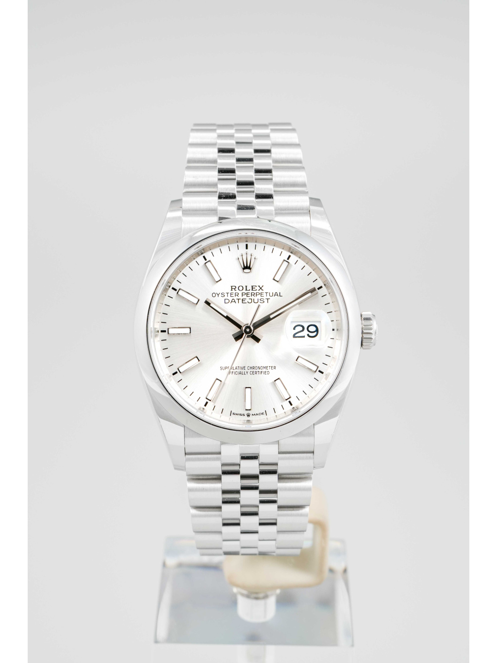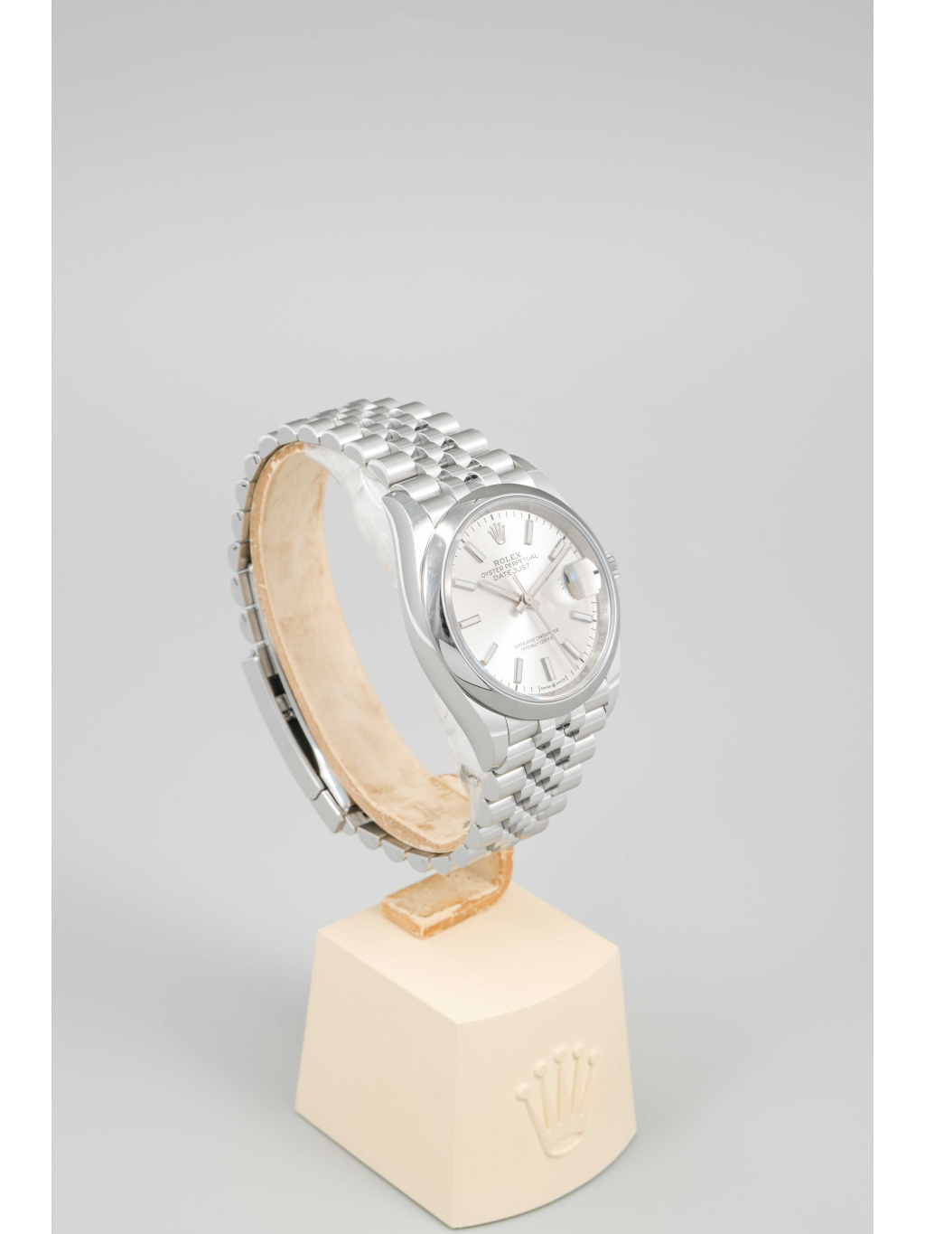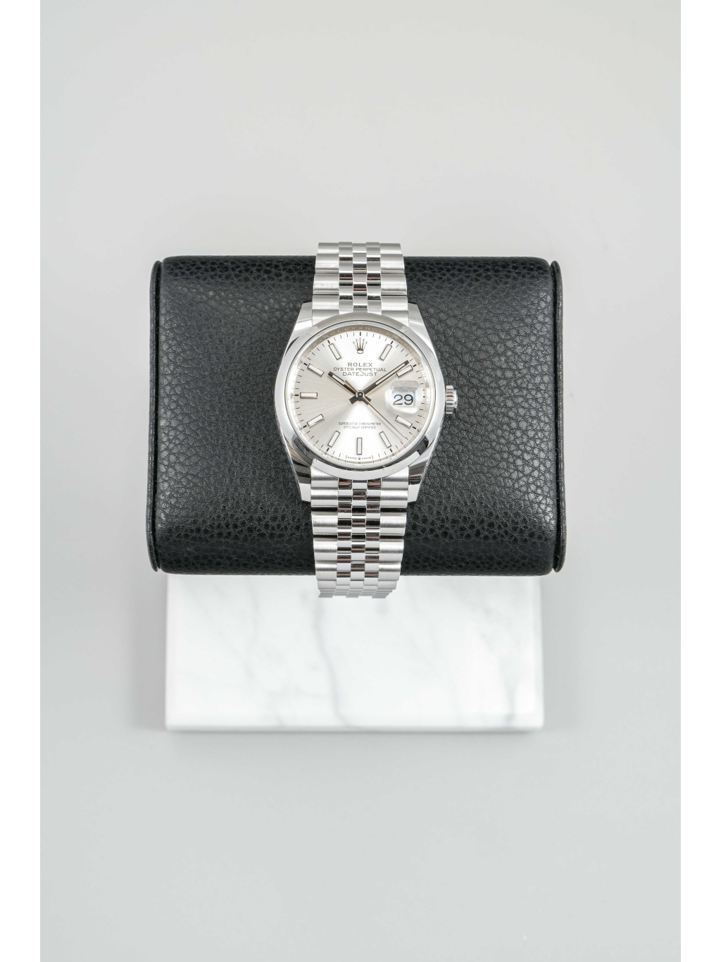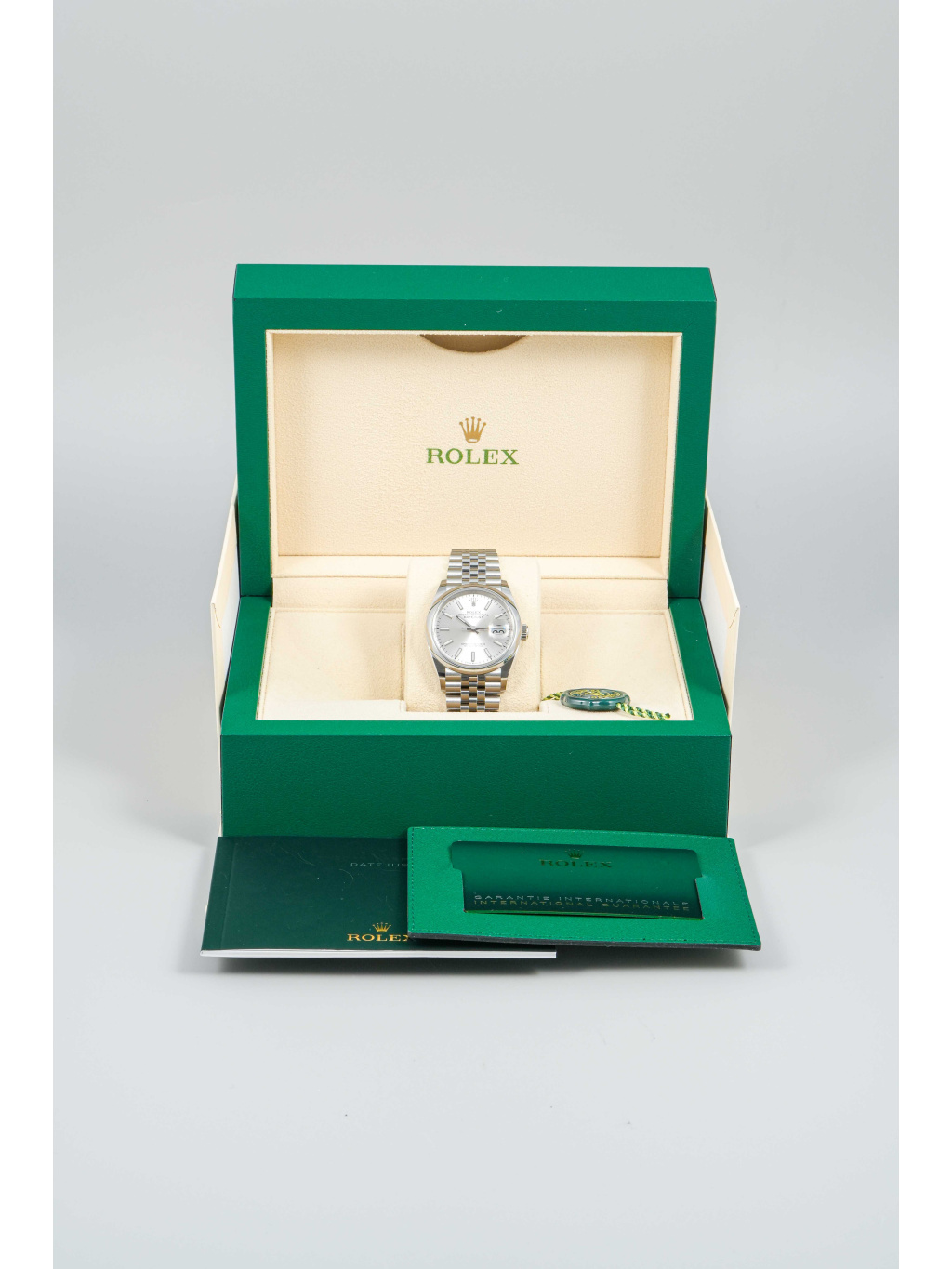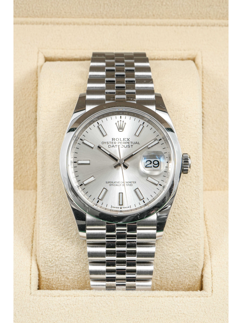 Rolex Datejust 36 je jedním z nejčistších a nejuniverzálnějších modelů celé kolekce Datejust. Tato varianta v celoocelovém provedení se stříbrným číselníkem působí elegantně, nadčasově a mimořádně vyváženě. Je ideální volbou pro ty, kteří hledají klasický Rolex s decentním vzhledem, jenž obstojí v každé situaci.