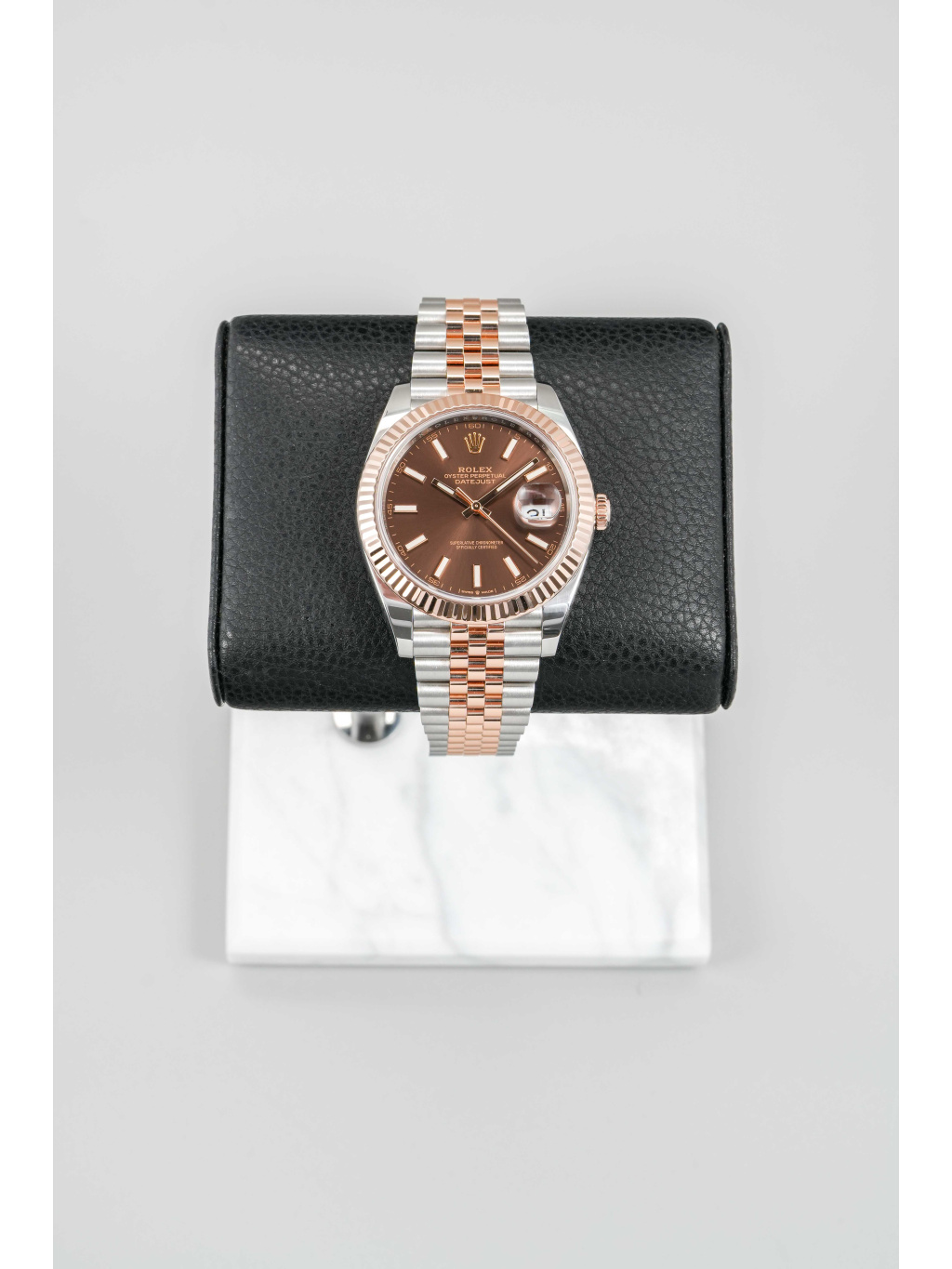 Rolex Datejust 41 s čokoládovým číselníkem v provedení Everose Rolesor je symbolem diskrétního luxusu a vytříbeného vkusu. Nadčasový model, který spojuje precizní techniku s elegantním stylem pro každý den.