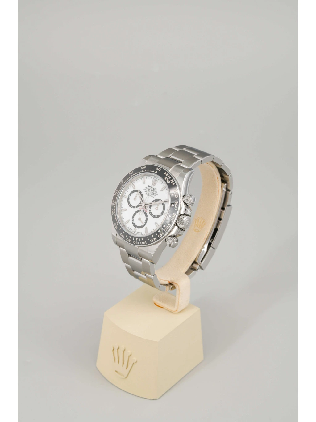 Pouzdro z oceli Oystersteel má průměr 40 mm a je doplněno černou keramickou lunetou Cerachrom s tachymetrickou stupnicí. Bílý číselník je doplněn bílými subčíselníky s černým okrajem, které vytvářejí ikonický kontrastní vzhled. Aplikované indexy a ručky s luminiscenční výplní Chromalight zajišťují výbornou čitelnost. Hodinky jsou osazeny robustním Oyster náramkem se sponou Oysterlock a systémem Easylink. Voděodolnost činí 100 metrů.