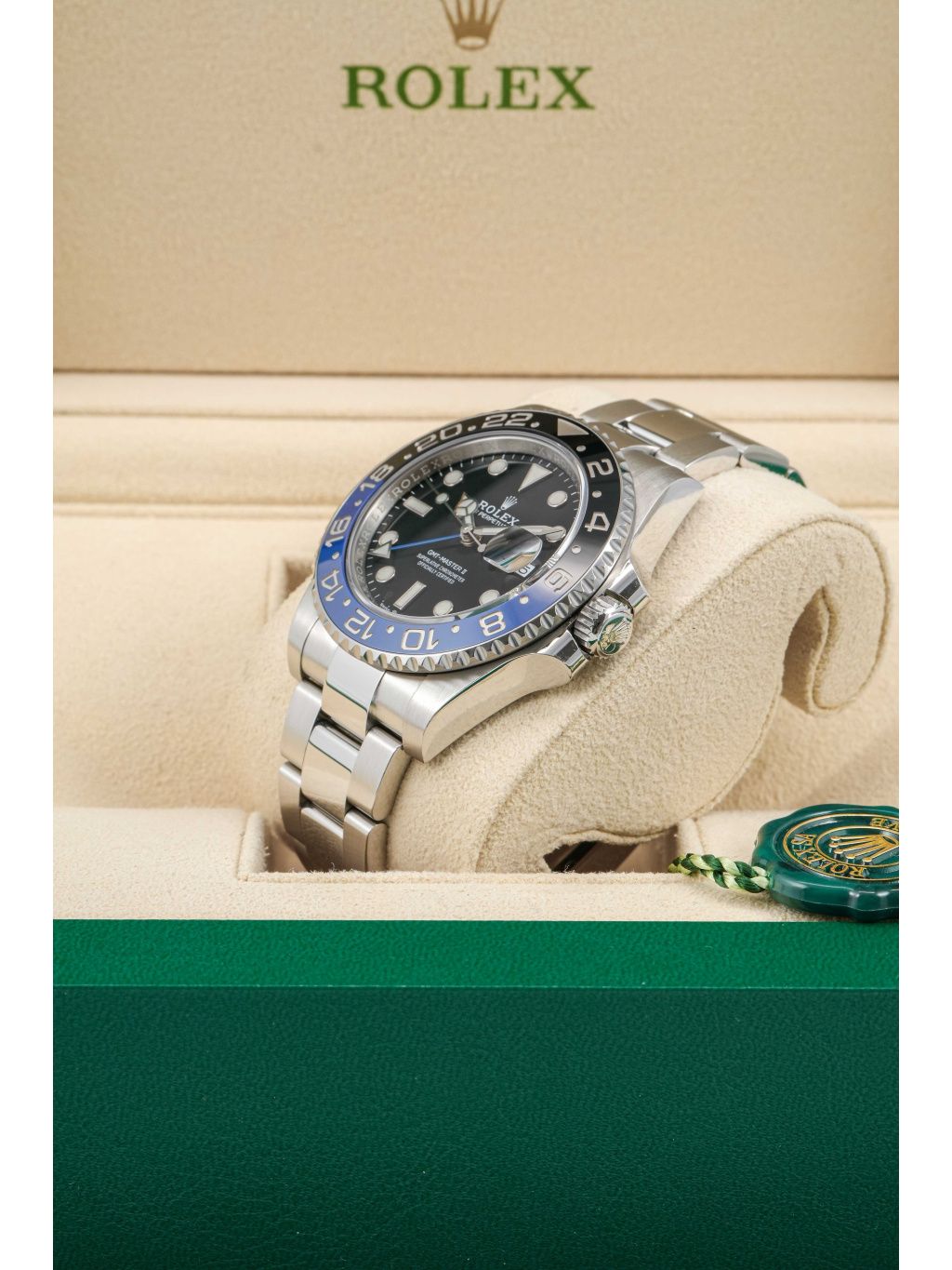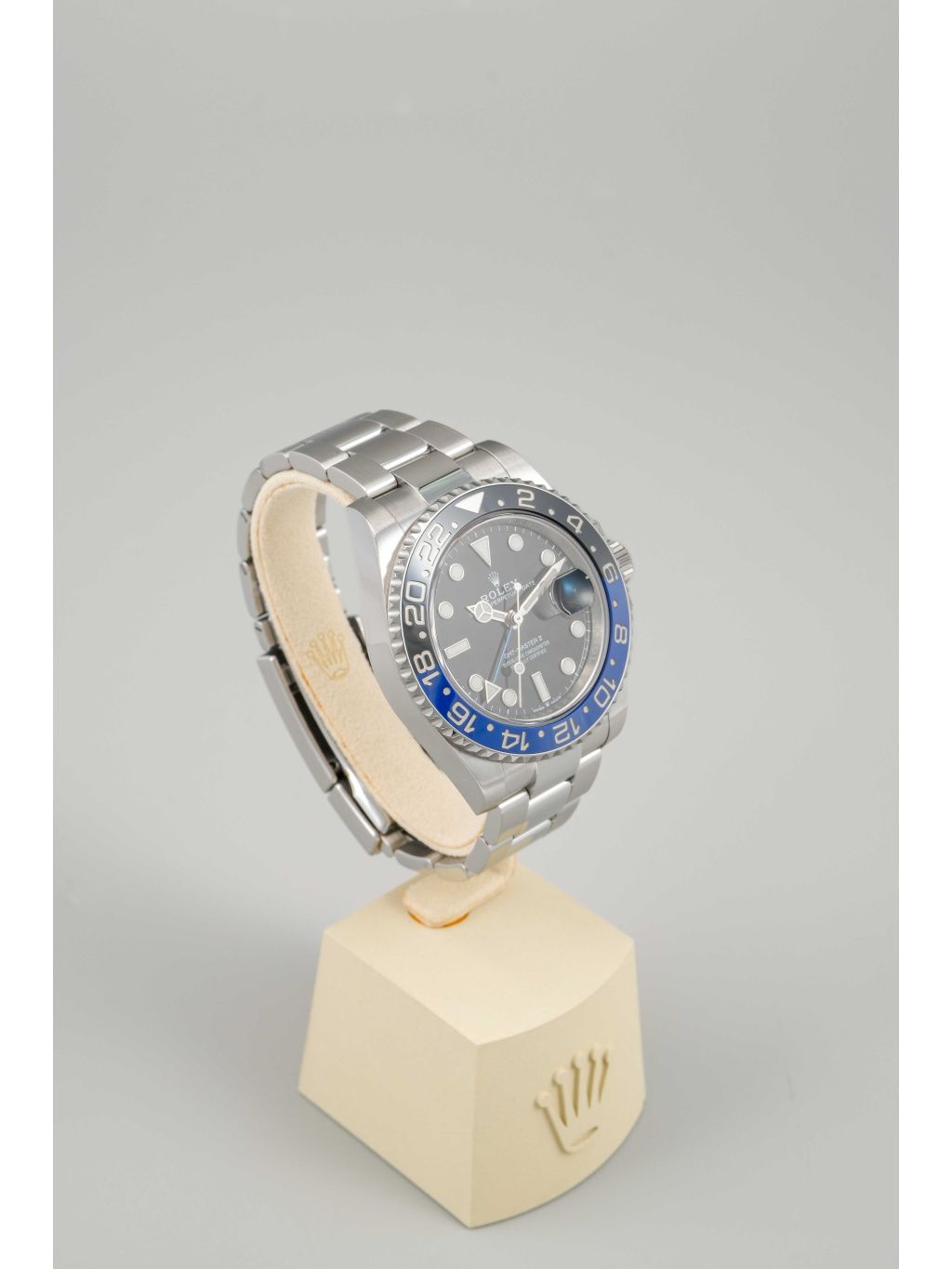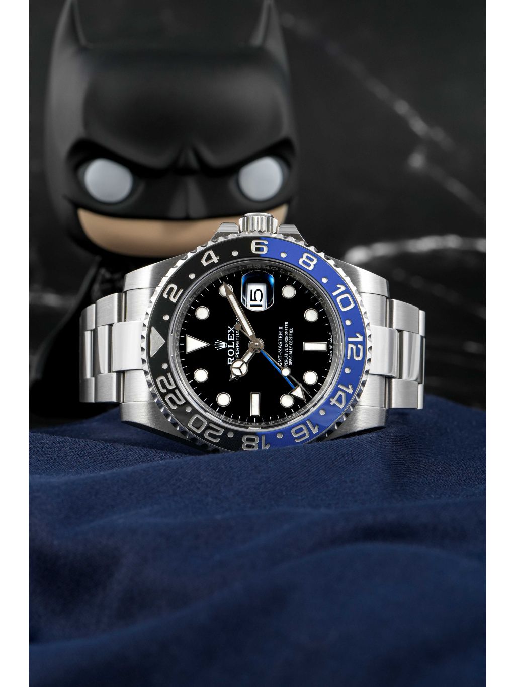 Hodinky jsou nasazeny na pevném a pohodlném Oyster náramku s bezpečnostní sponou Oysterlock a systémem Easylink pro rychlé nastavení délky. GMT-Master II „Batman“ je spojením precizní hodinářské technologie a výrazného designu, které ocení každý dobrodruh i milovník moderního stylu.