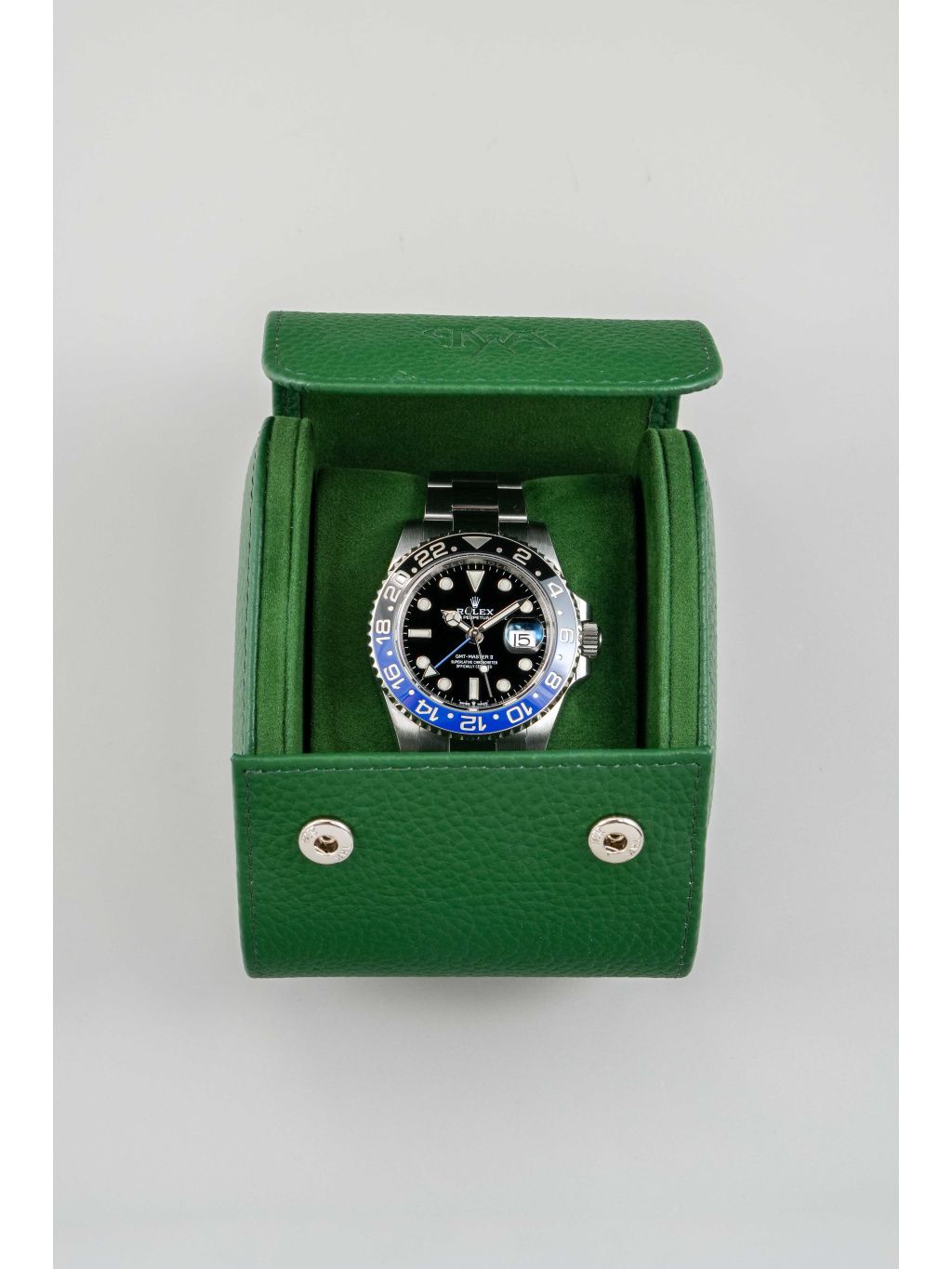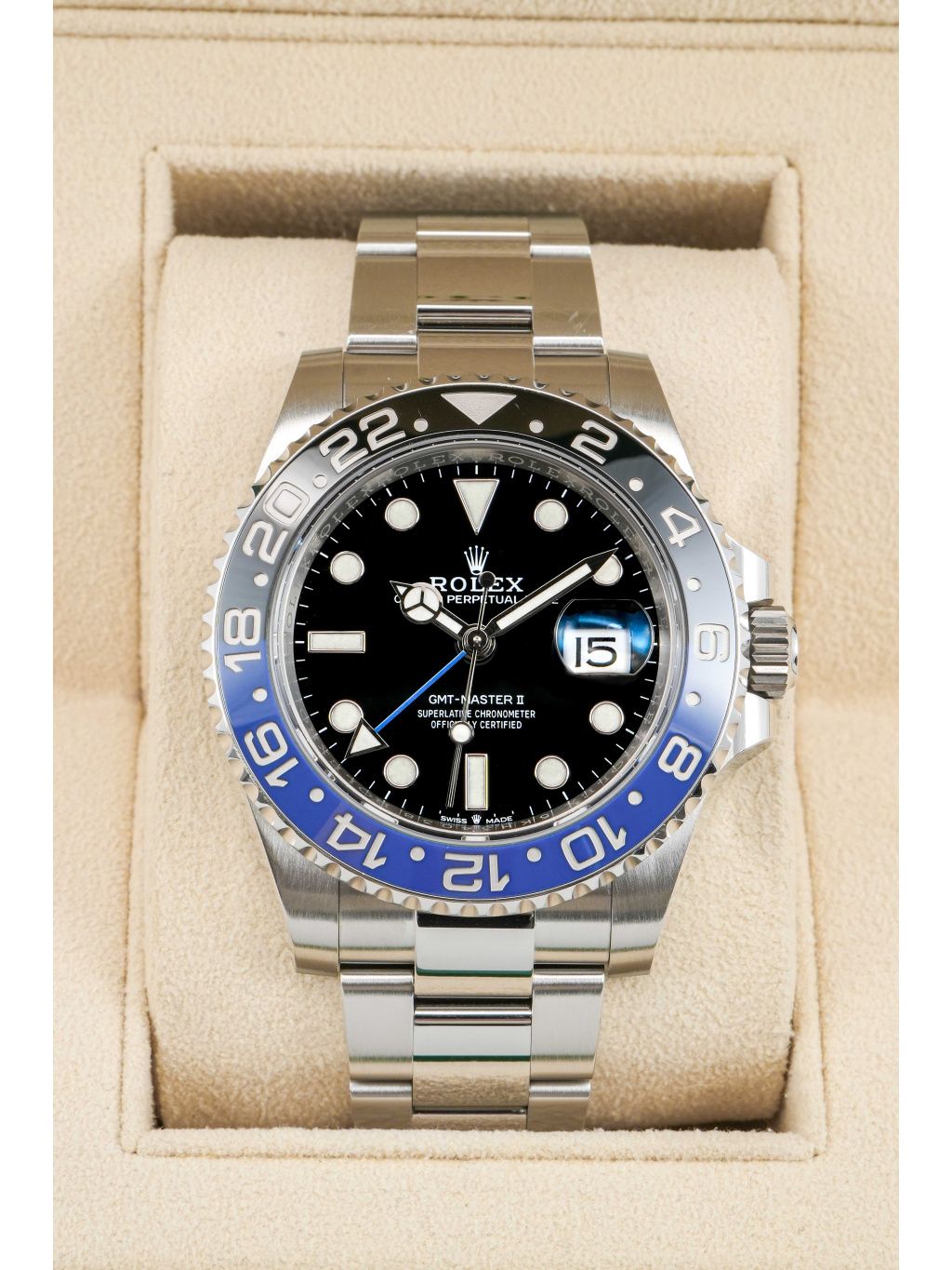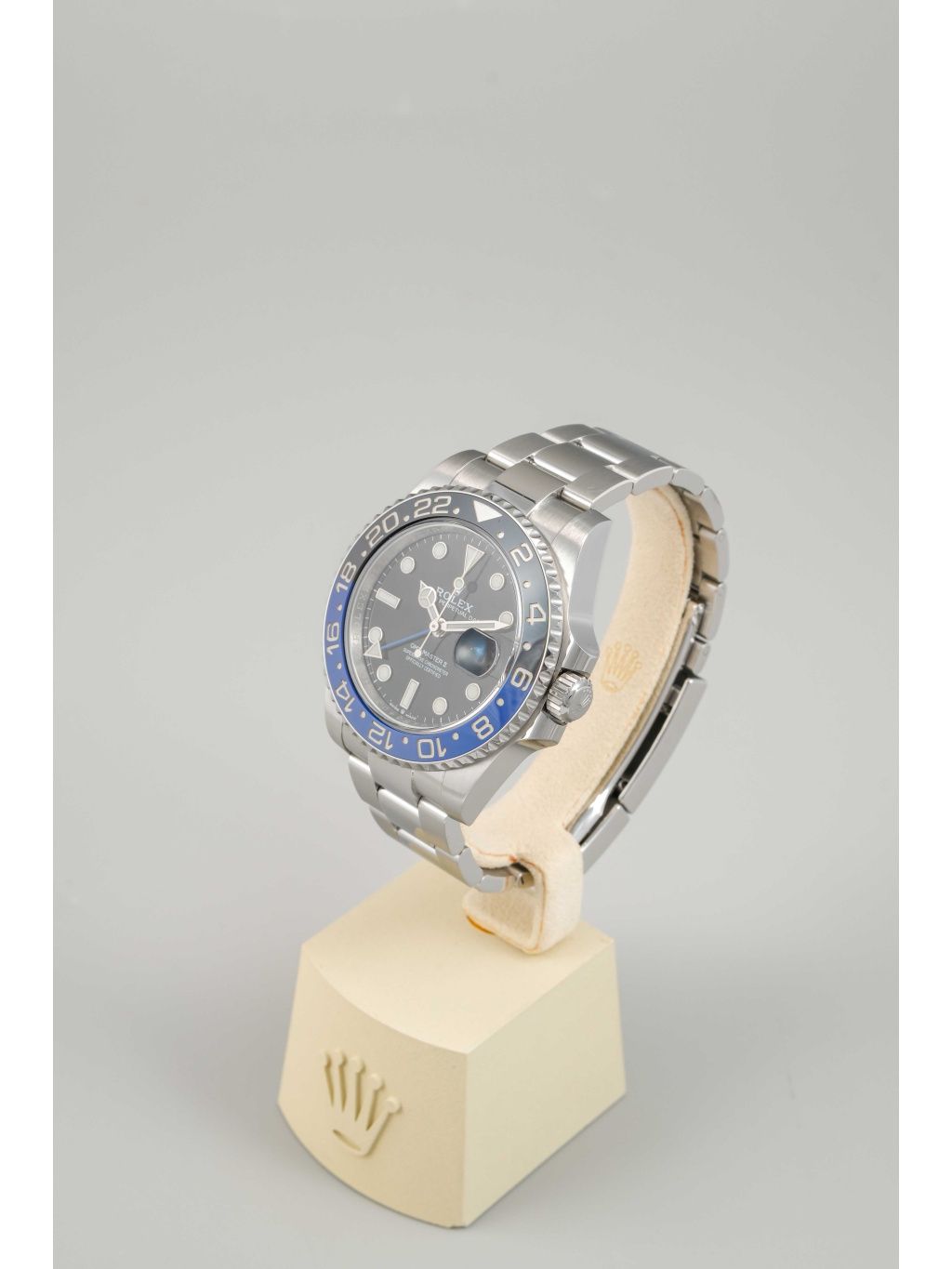 Hodinky jsou nasazeny na pevném a pohodlném Oyster náramku s bezpečnostní sponou Oysterlock a systémem Easylink pro rychlé nastavení délky. GMT-Master II „Batman“ je spojením precizní hodinářské technologie a výrazného designu, které ocení každý dobrodruh i milovník moderního stylu.