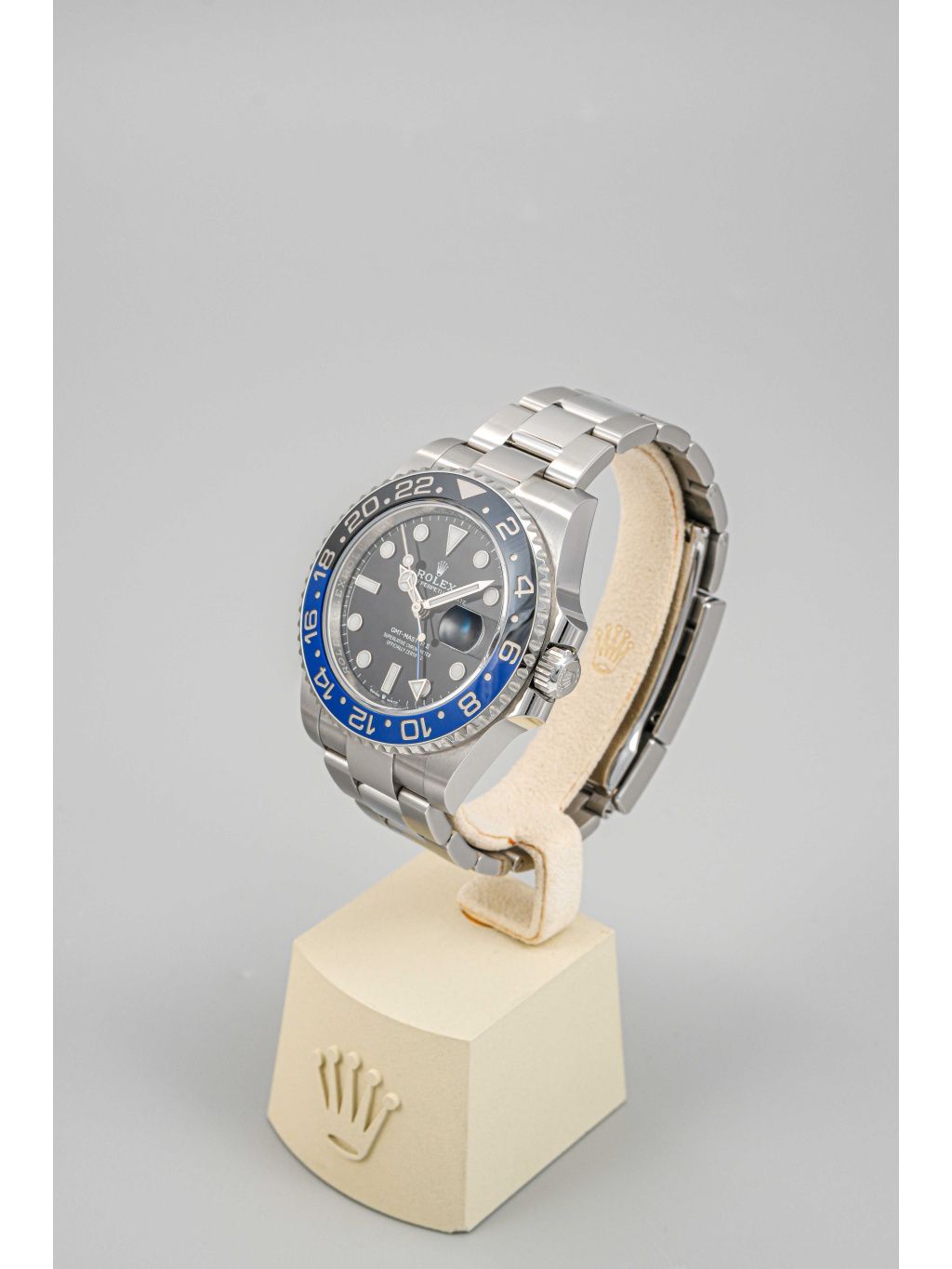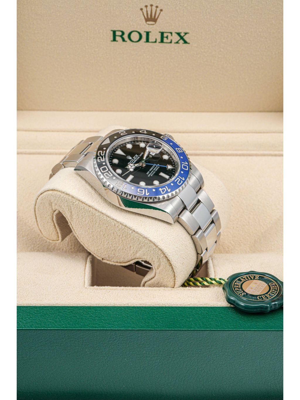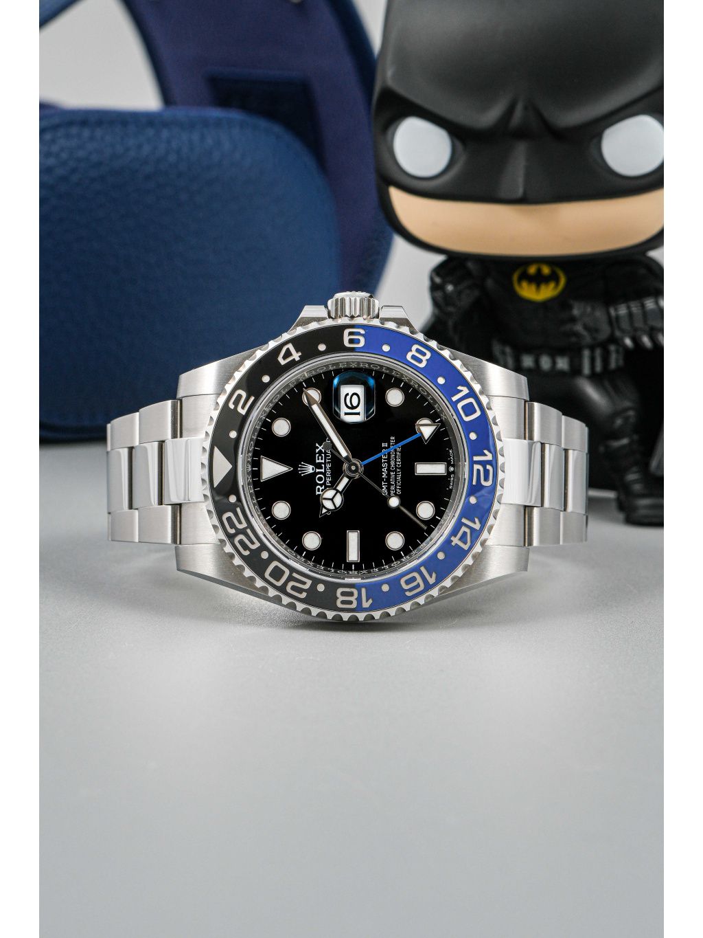 Hodinky jsou nasazeny na pevném a pohodlném Oyster náramku s bezpečnostní sponou Oysterlock a systémem Easylink pro rychlé nastavení délky. GMT-Master II „Batman“ je spojením precizní hodinářské technologie a výrazného designu, které ocení každý dobrodruh i milovník moderního stylu.