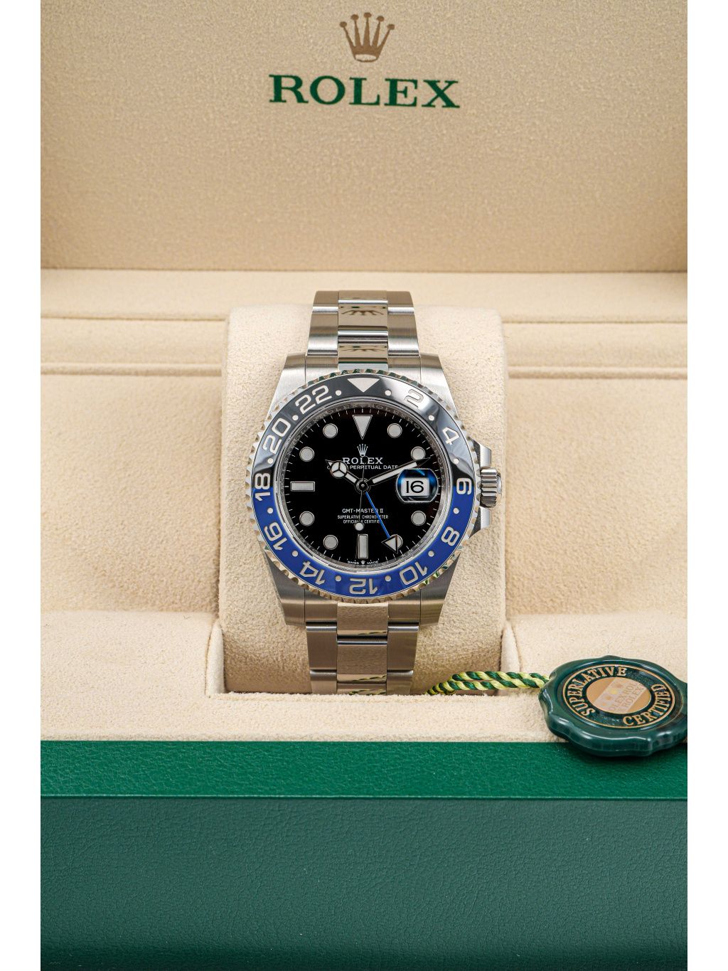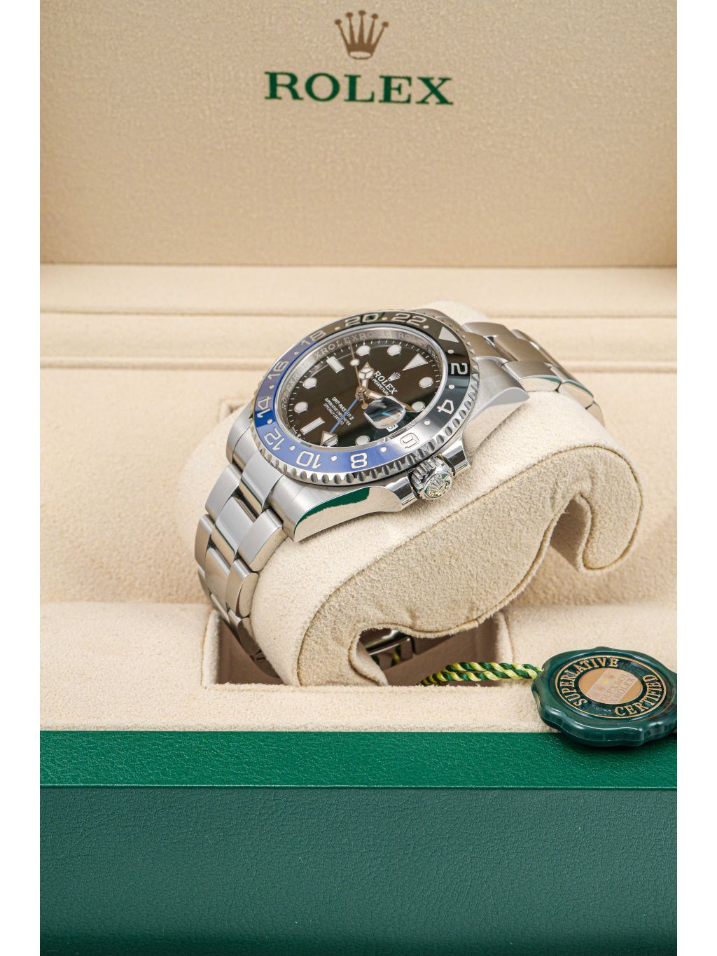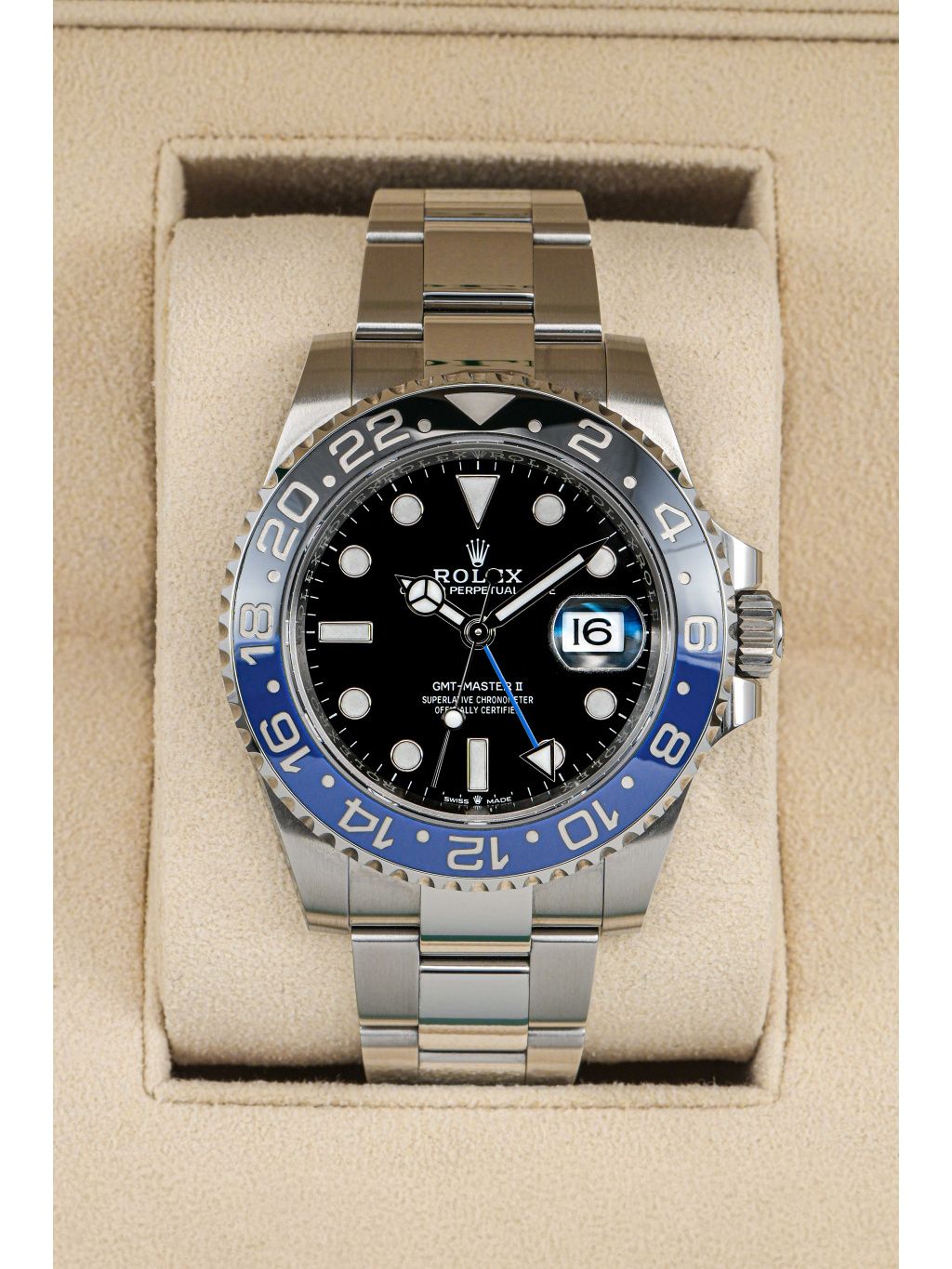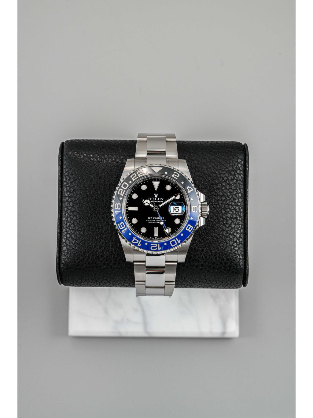 Hodinky jsou nasazeny na pevném a pohodlném Oyster náramku s bezpečnostní sponou Oysterlock a systémem Easylink pro rychlé nastavení délky. GMT-Master II „Batman“ je spojením precizní hodinářské technologie a výrazného designu, které ocení každý dobrodruh i milovník moderního stylu.