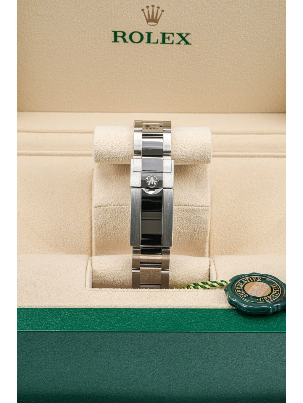 Pouzdro z nerezové oceli 904L o průměru 40 mm skrývá spolehlivý automatický strojek kalibru 3285 s rezervou chodu až 70 hodin a odolností vůči nárazům i magnetickým polím. Safírové sklo s čočkou Cyclops chrání černý číselník s výraznými luminiscenčními indexy, které zajišťují perfektní čitelnost ve dne i v noci.