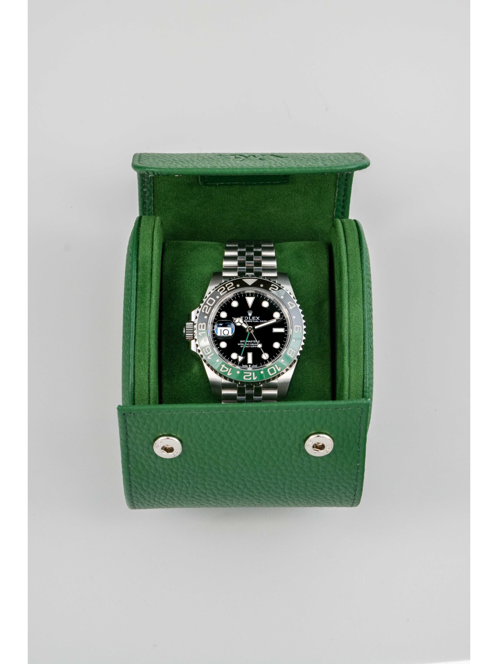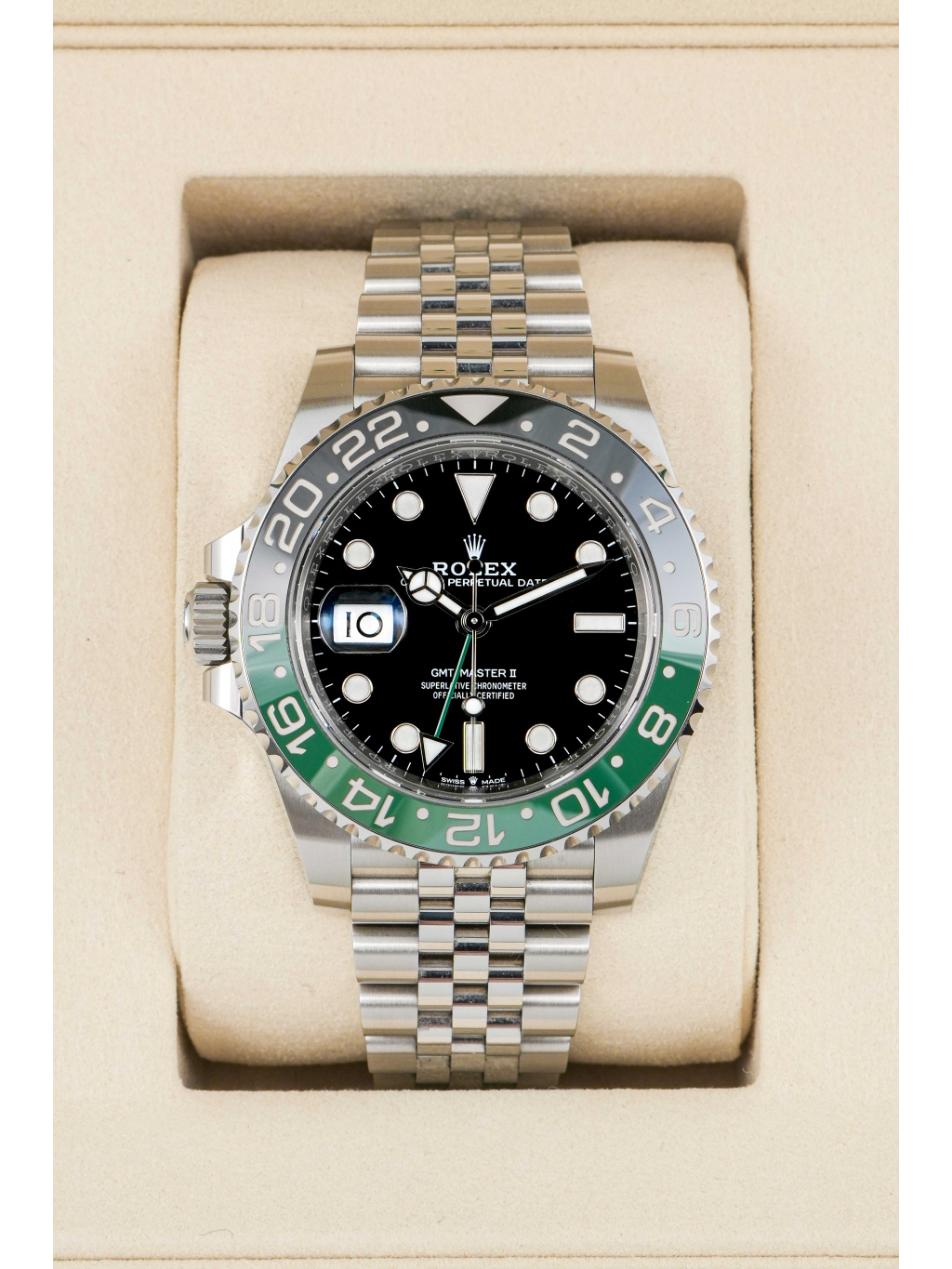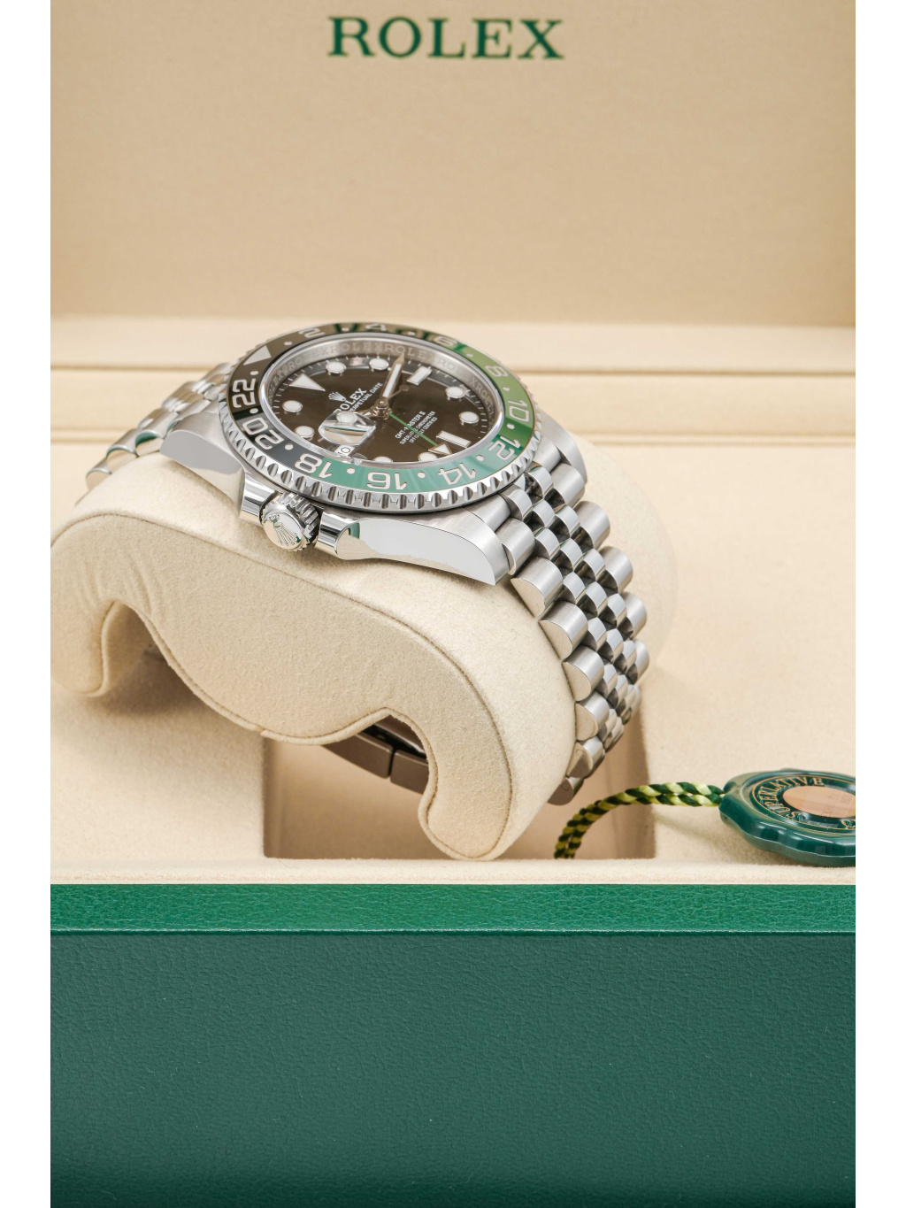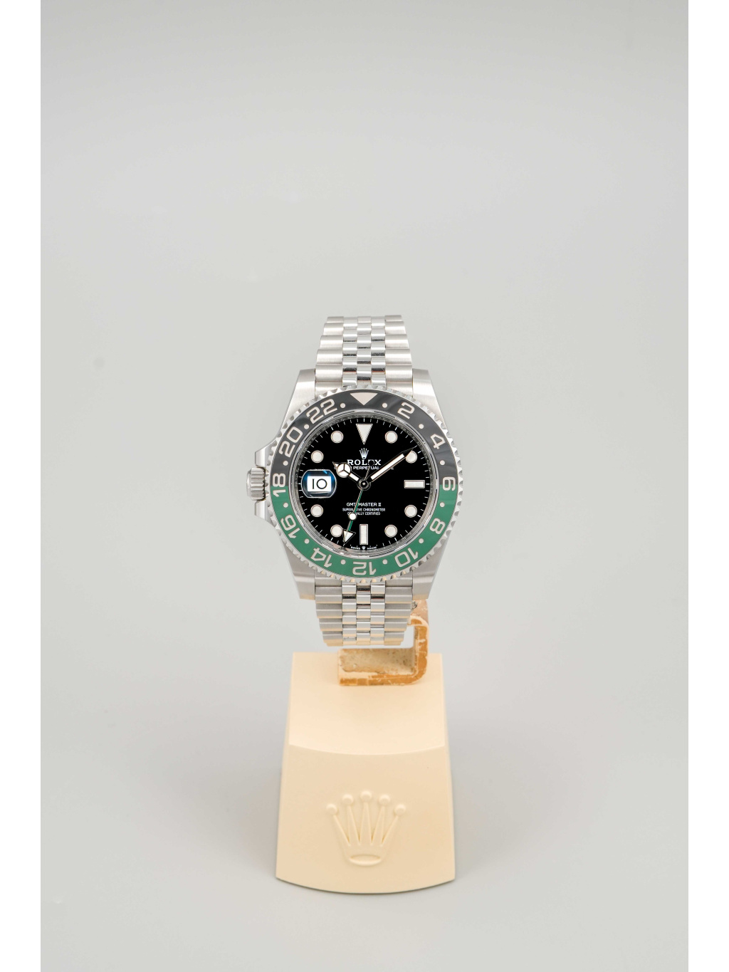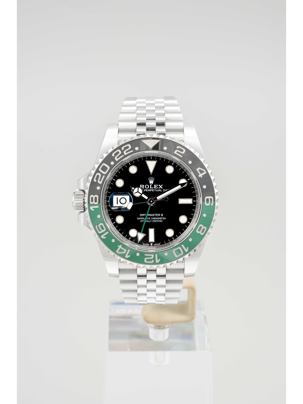 Model přezdívaný „Sprite“ – Rolex GMT-Master II – je jedním z nejdiskutovanějších přírůstků do řady GMT. Jako první GMT-Master v historii přináší levostranně umístěnou korunku, čímž zaujme nejen leváky, ale i sběratele, kteří hledají výjimečnost. K tomu se přidává výrazná dvoubarevná luneta Cerachrom v kombinaci černé a zelené, která podtrhuje jedinečný charakter tohoto modelu.