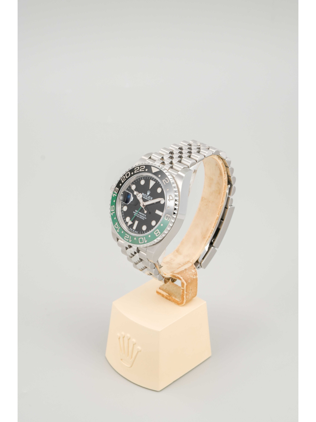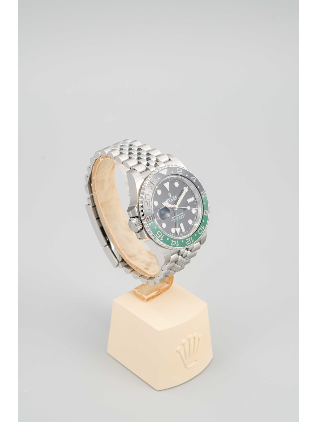 Model je nasazen na elegantním Jubilee náramku z oceli Oystersteel. Díky pětidílné konstrukci článků a skryté sponě Crownclasp nabízí maximální komfort při nošení a současně zdůrazňuje luxusní charakter tohoto výjimečného GMT modelu.