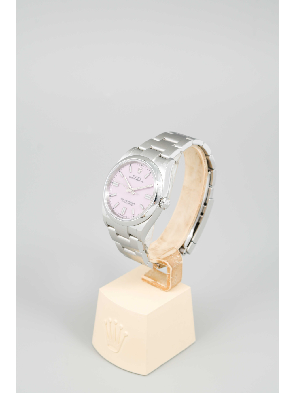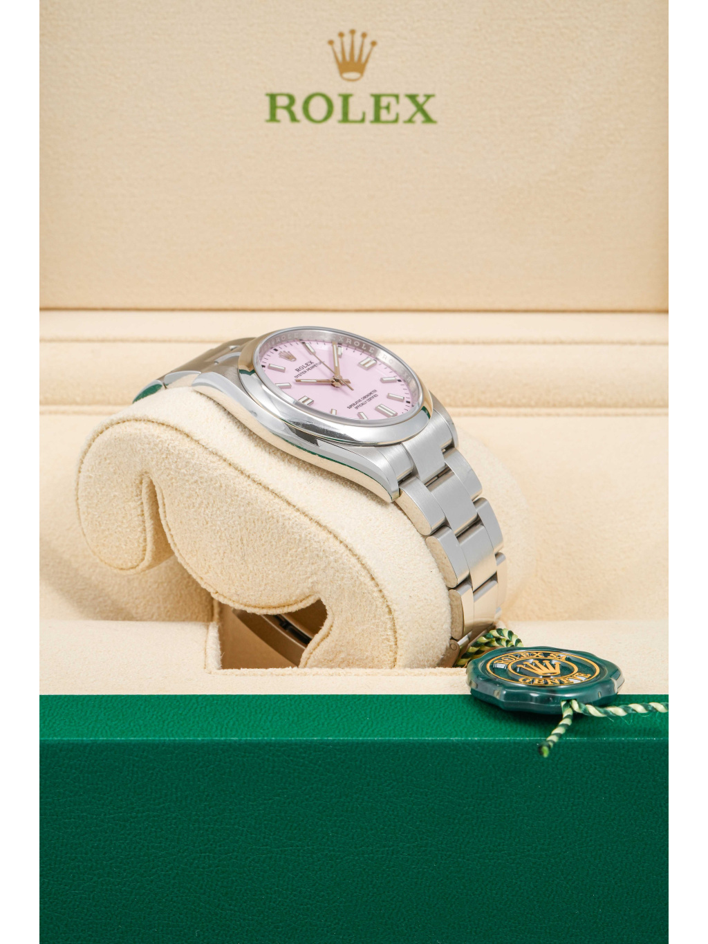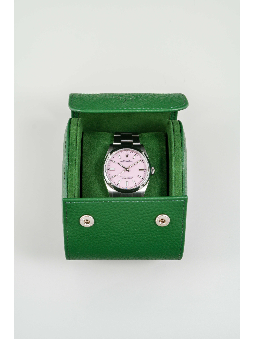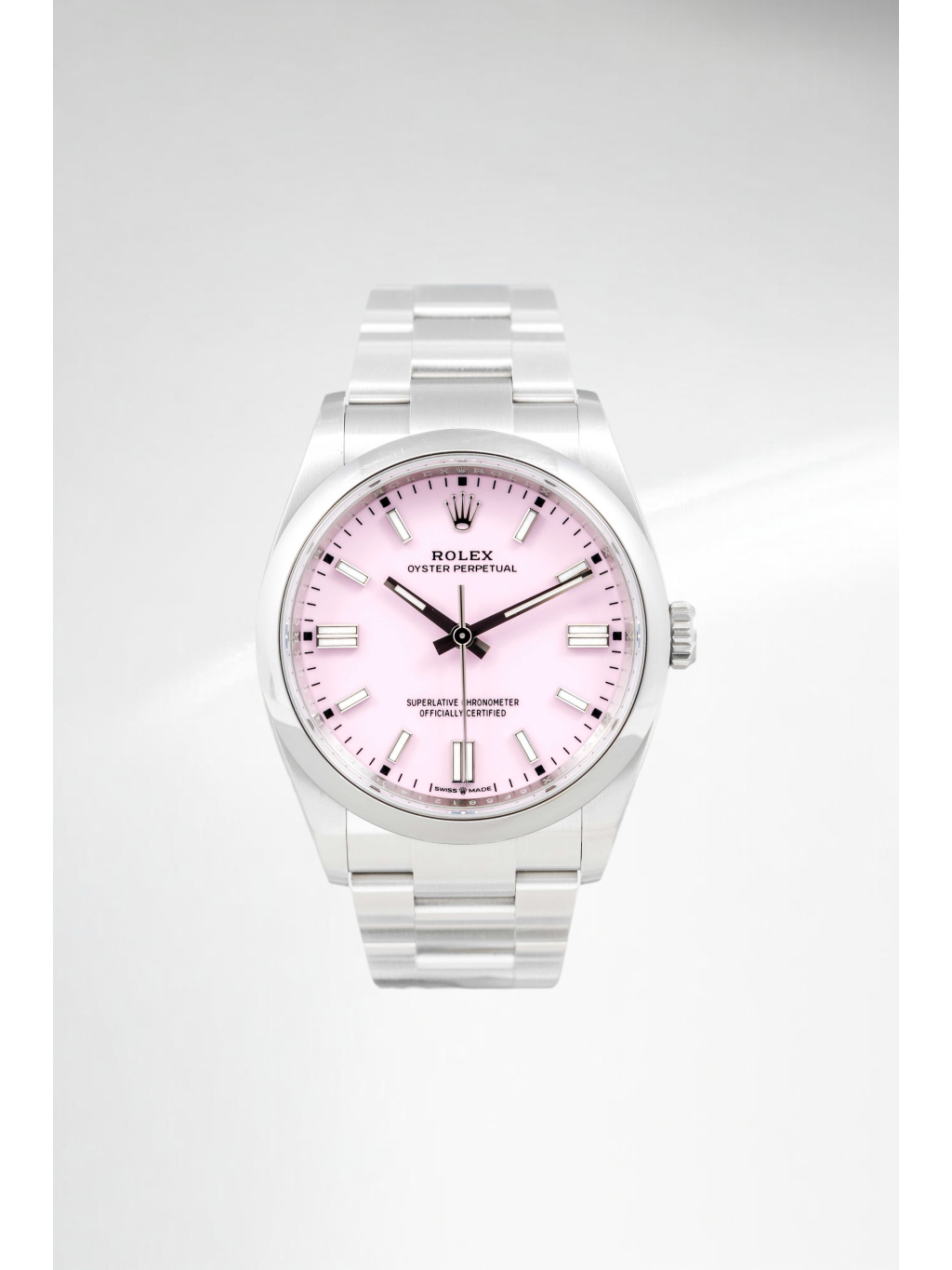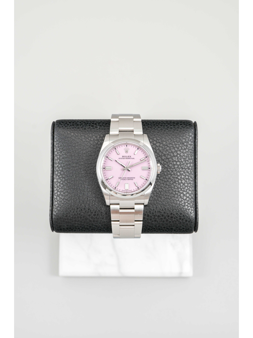 Rolex Oyster Perpetual 36 patří mezi nejčistší a nejautentičtější modely značky Rolex. Varianta s candy pink číselníkem přináší hravý, moderní akcent, který výrazně oživuje jinak minimalistický design. Jemný růžový odstín působí svěže a sebevědomě, přičemž si zachovává nadčasový charakter typický pro řadu Oyster Perpetual.