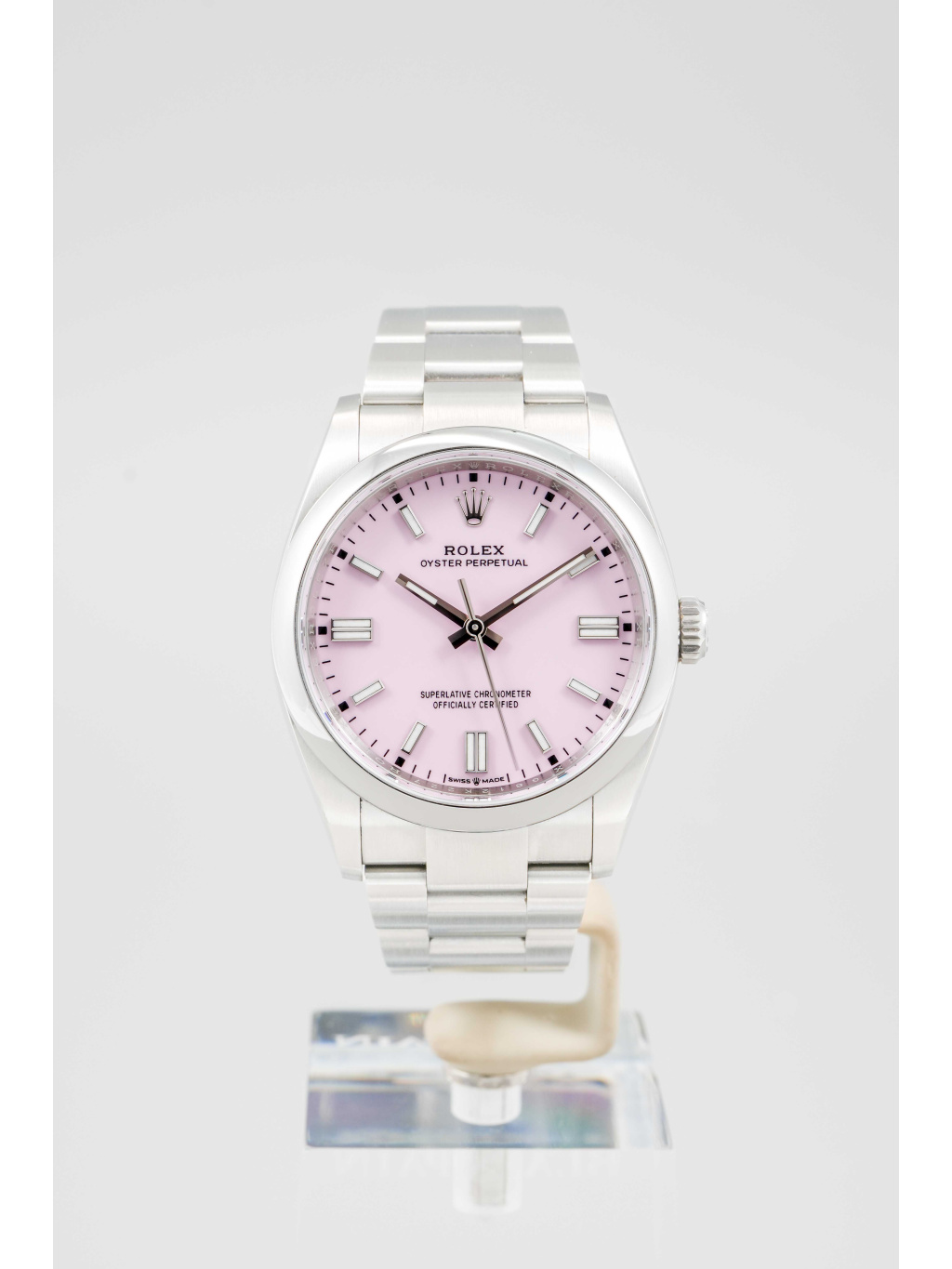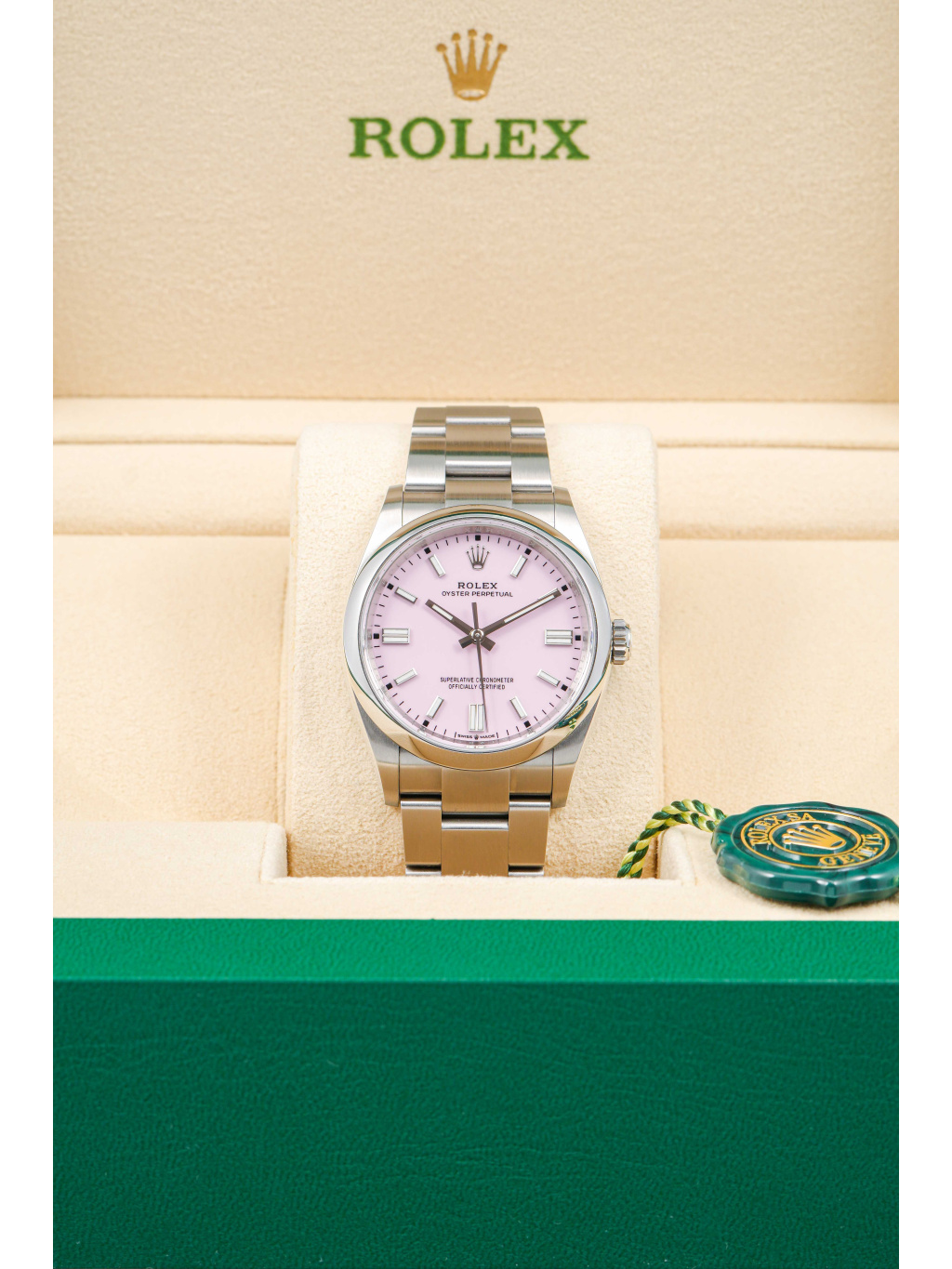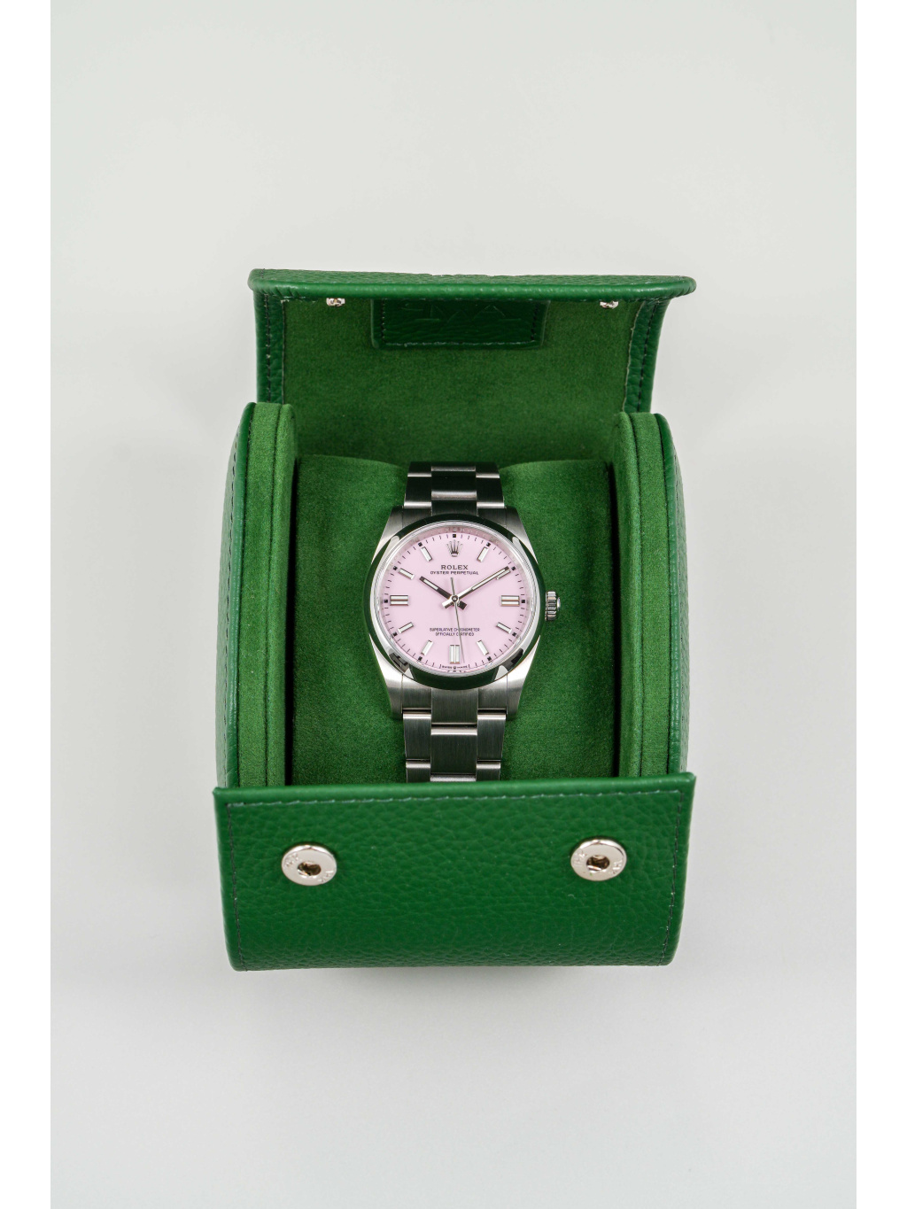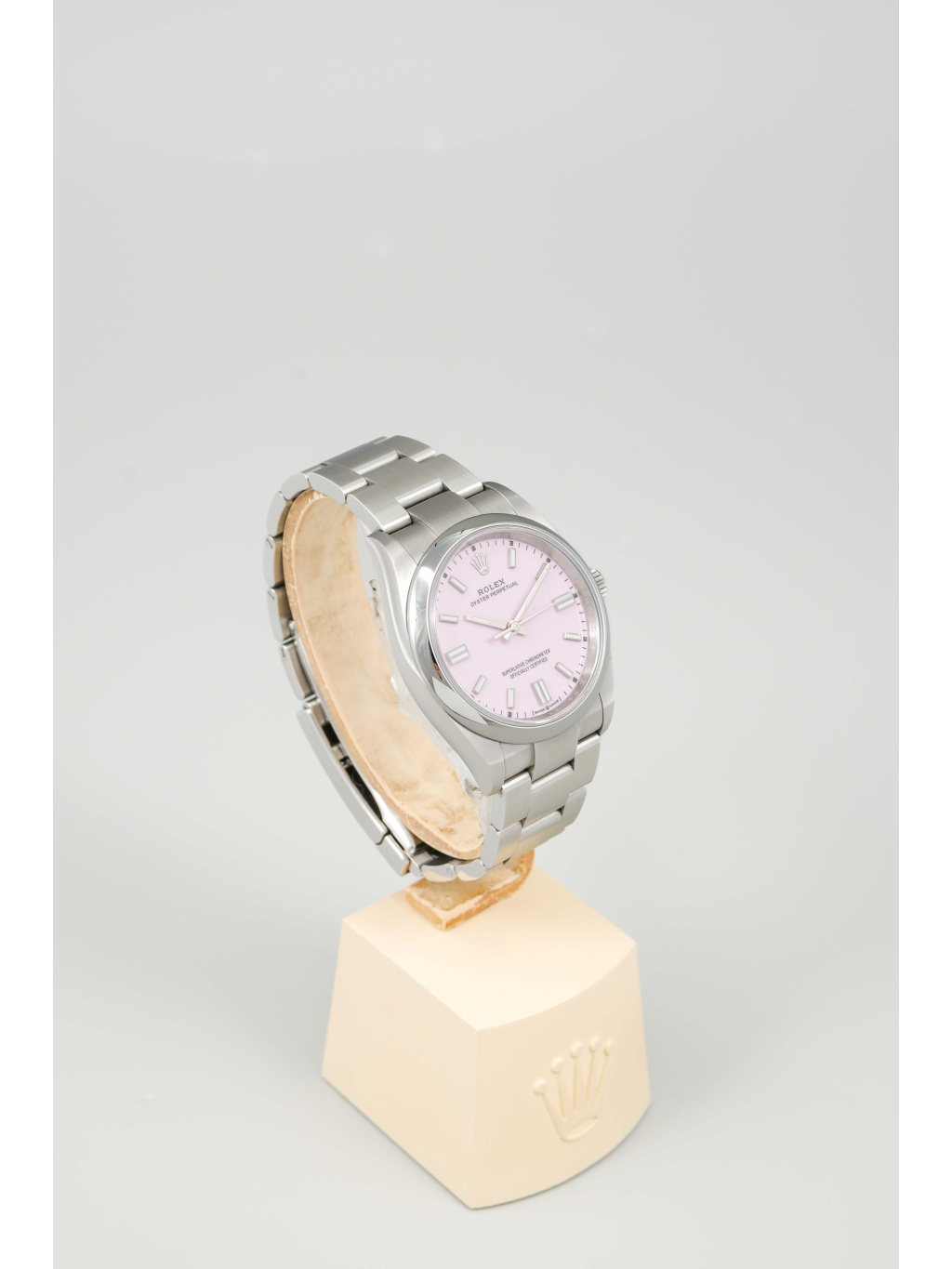 Rolex Oyster Perpetual 36 patří mezi nejčistší a nejautentičtější modely značky Rolex. Varianta s candy pink číselníkem přináší hravý, moderní akcent, který výrazně oživuje jinak minimalistický design. Jemný růžový odstín působí svěže a sebevědomě, přičemž si zachovává nadčasový charakter typický pro řadu Oyster Perpetual.