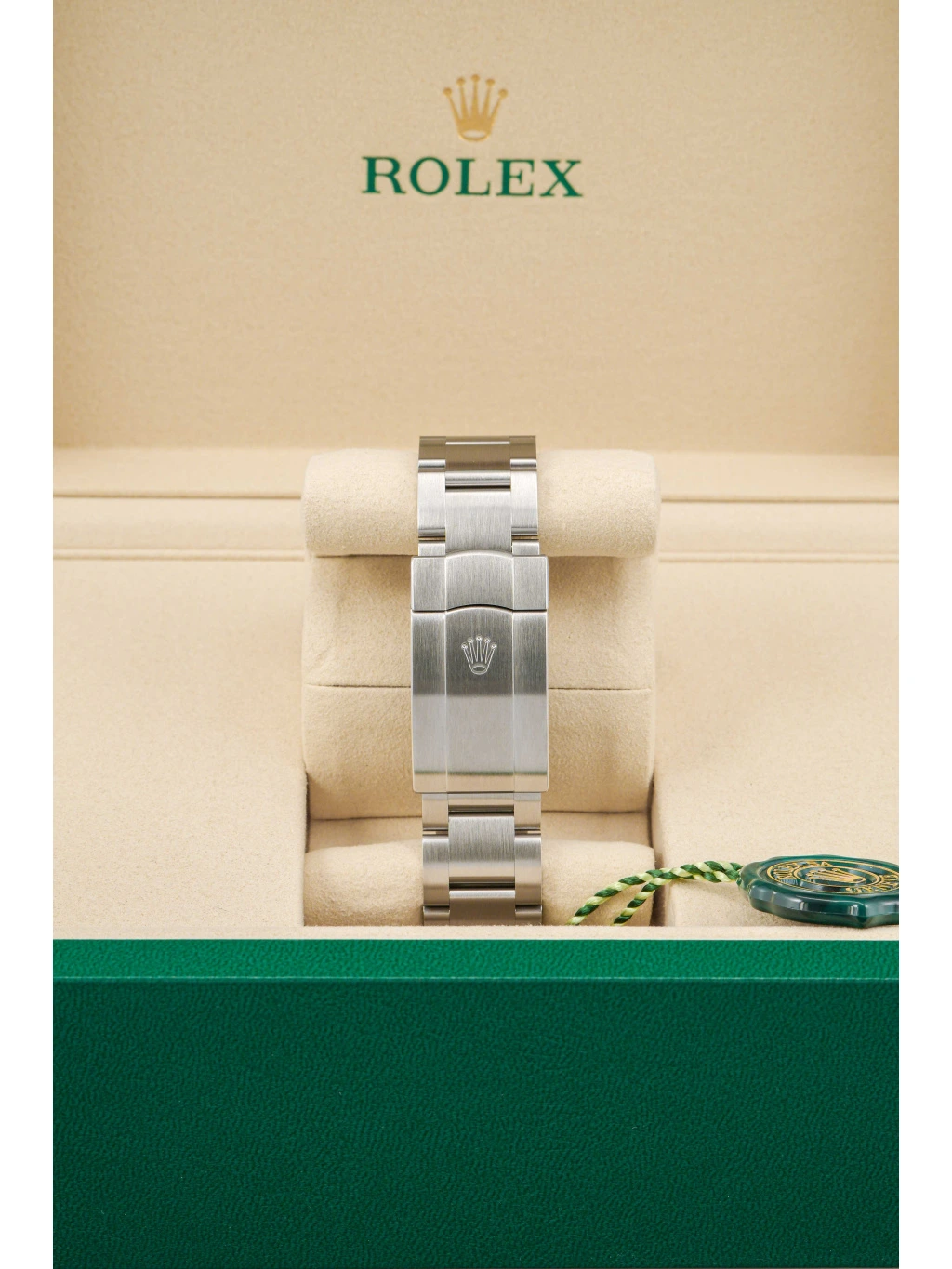 Hodinky jsou osazeny robustním Oyster náramkem s trojdílnými články, který zajišťuje komfort i odolnost při každodenním nošení. Spona Oysterclasp se systémem Easylink umožňuje rychlé prodloužení délky. Voděodolnost činí 100 metrů.