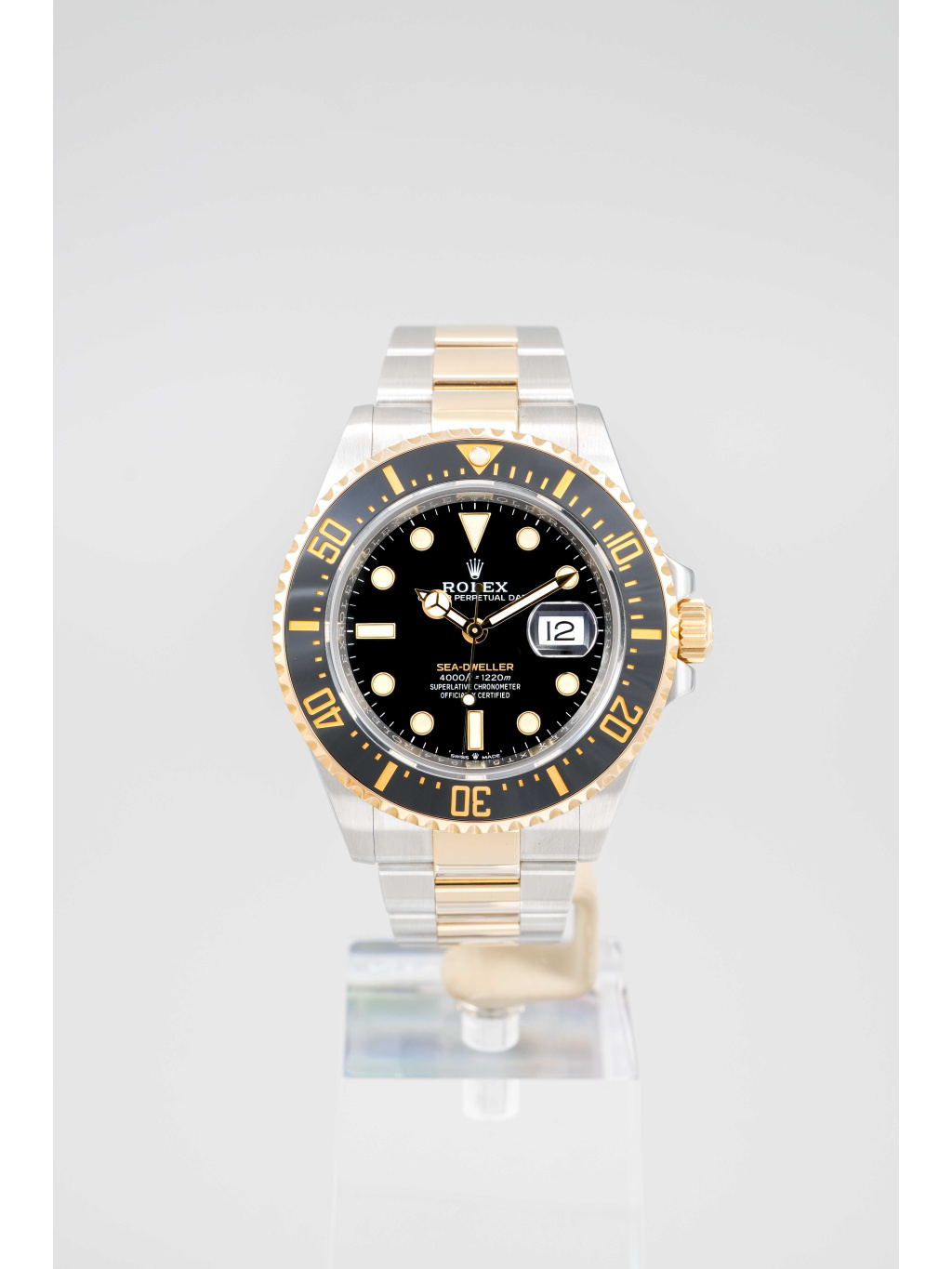 Rolex Sea-Dweller v dvoutónovém provedení spojuje profesionální potápěčské schopnosti s luxusním vzhledem, díky čemuž patří mezi nejvýraznější moderní sportovní modely značky Rolex.