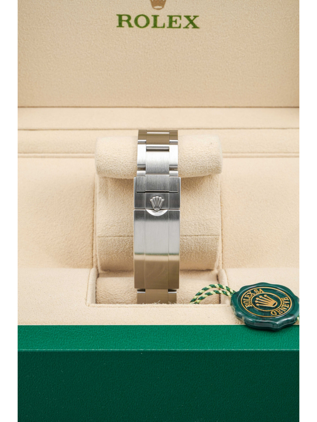 Pouzdro z oceli Oystersteel má průměr 40 mm a robustní „Super Case“ proporce. Jednosměrně otočná luneta Cerachrom ze zelené keramiky je vysoce odolná proti poškrábání a vyblednutí. Zelený sunburst číselník mění odstín podle světla a je osazen aplikovanými indexy a ručkami s luminiscenční výplní Chromalight pro perfektní čitelnost. Safírové sklíčko doplňuje čočka Cyclops nad datem. Hodinky jsou osazeny Oyster náramkem se sponou Oysterlock a systémem Glidelock pro jemné nastavení délky. Voděodolnost činí 300 metrů.