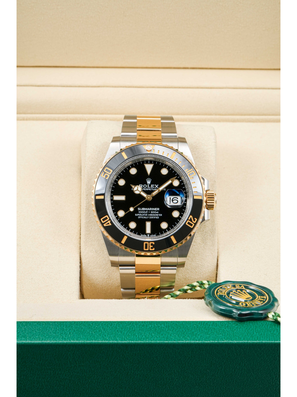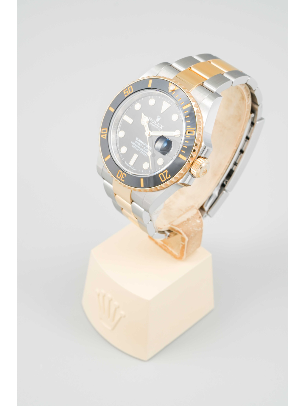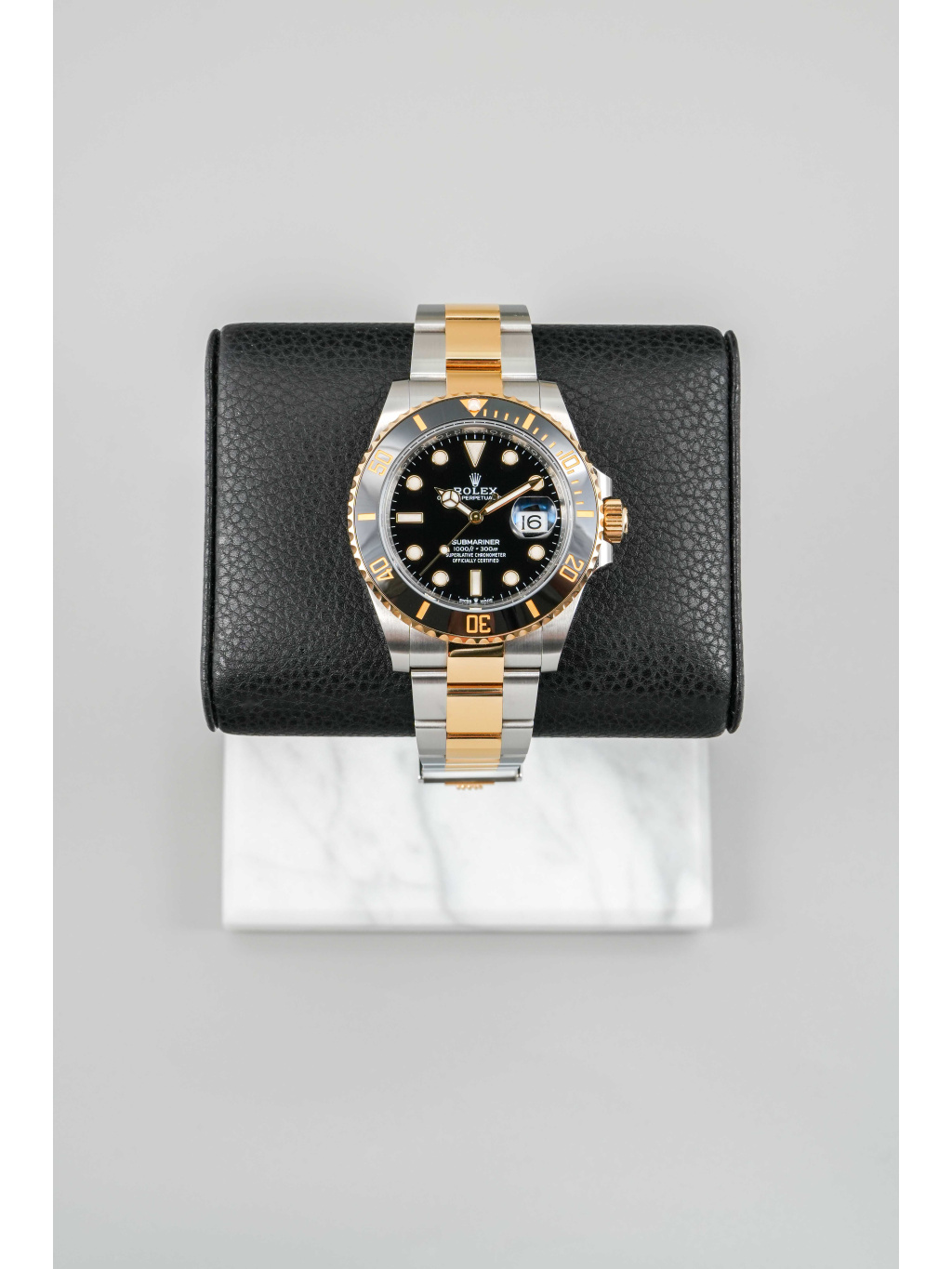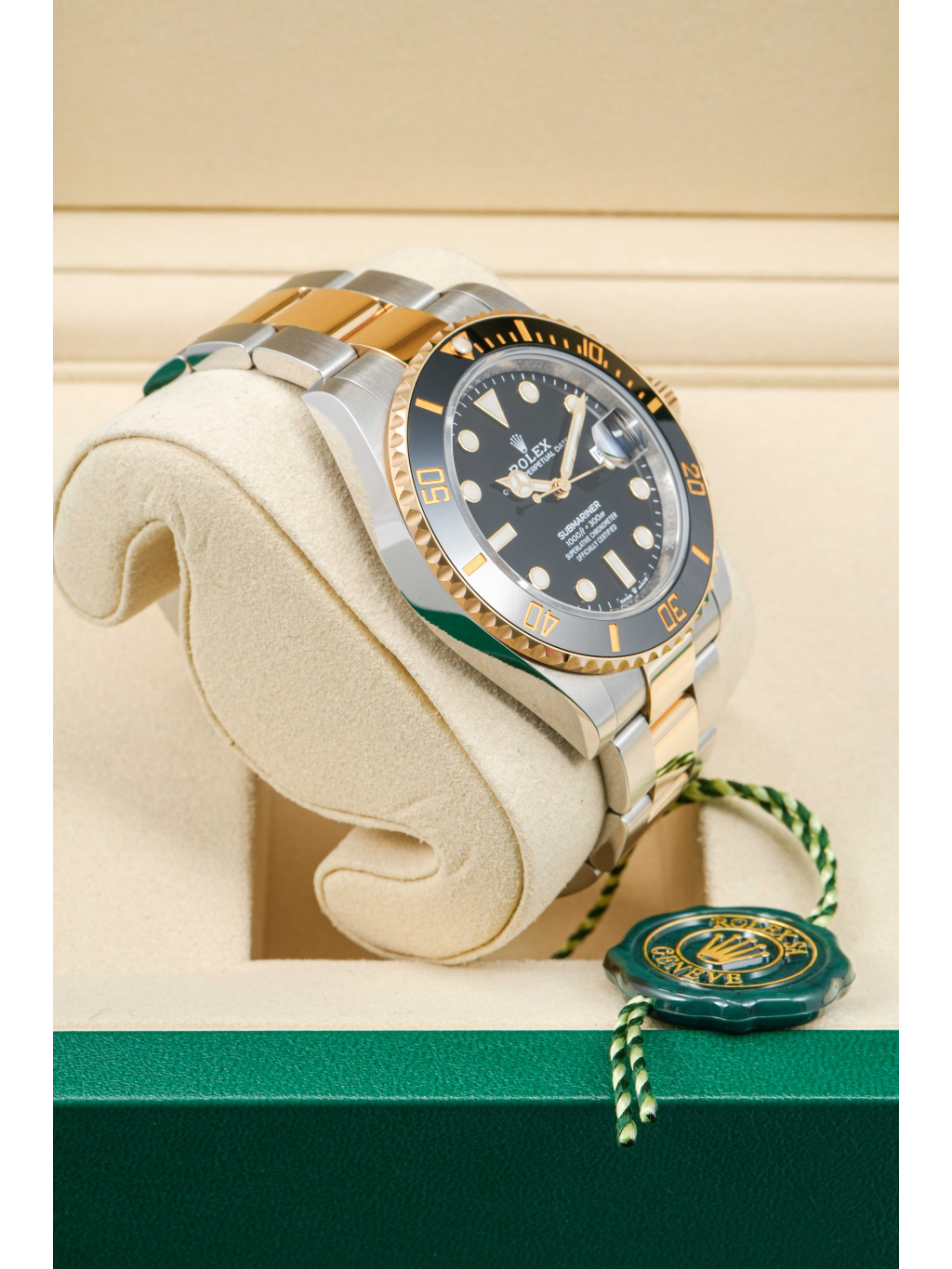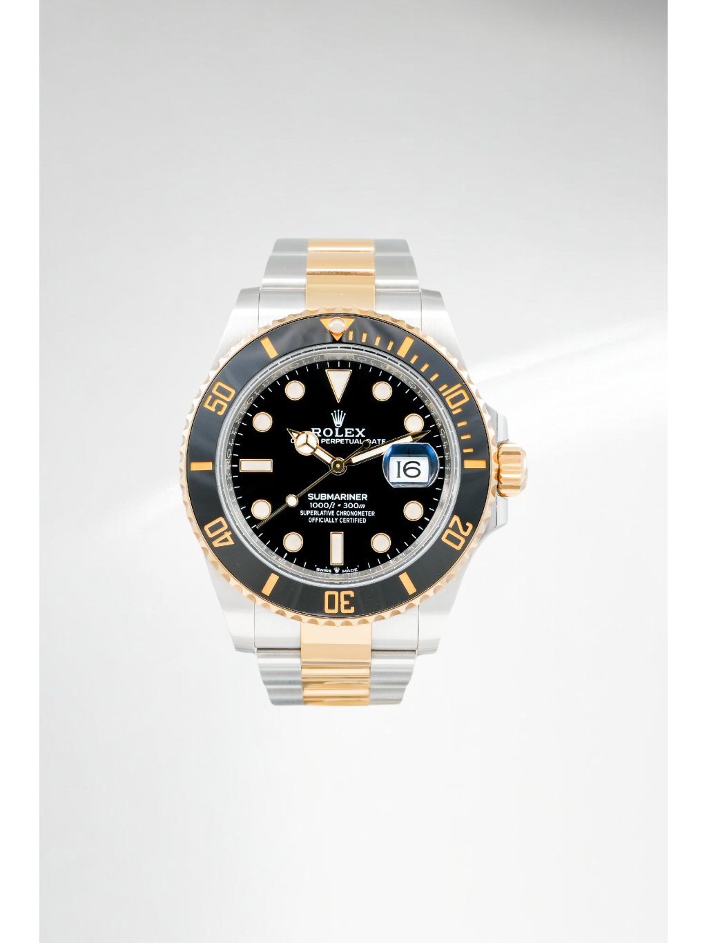 Hodinky jsou osazeny Oyster náramkem s kombinací ocelových a zlatých článků, doplněným o sponu Oysterlock a systém Glidelock, který umožňuje jemné prodloužení bez použití nástrojů – ideální i přes potápěčský oblek.