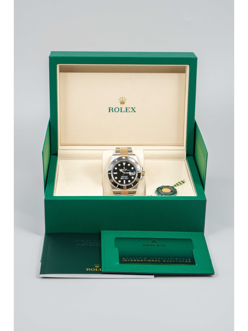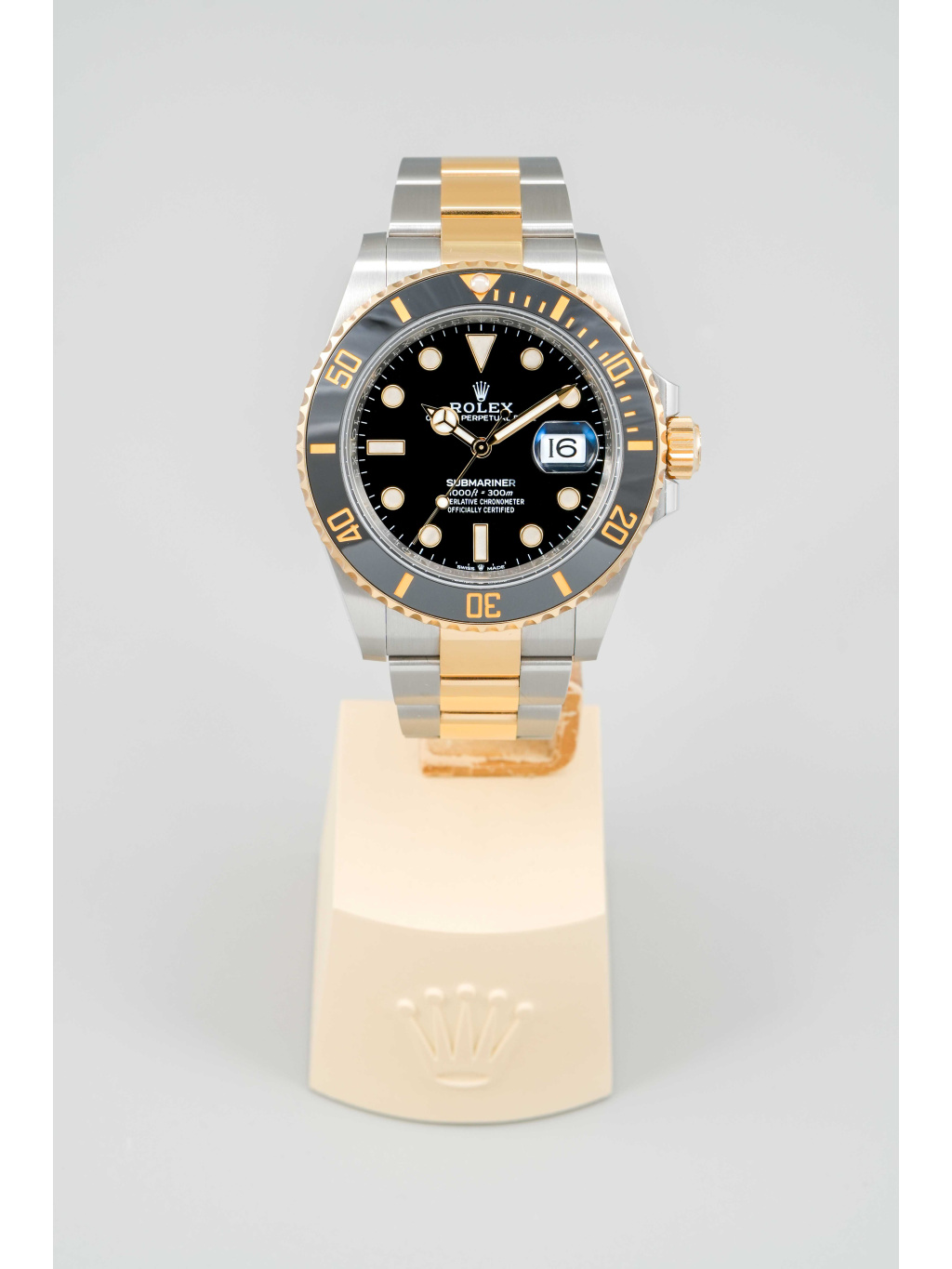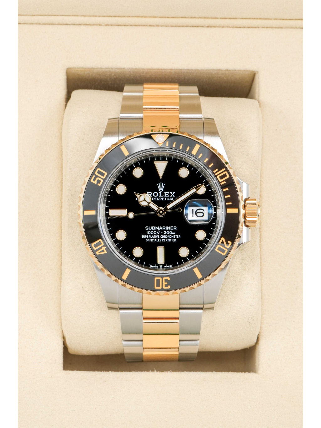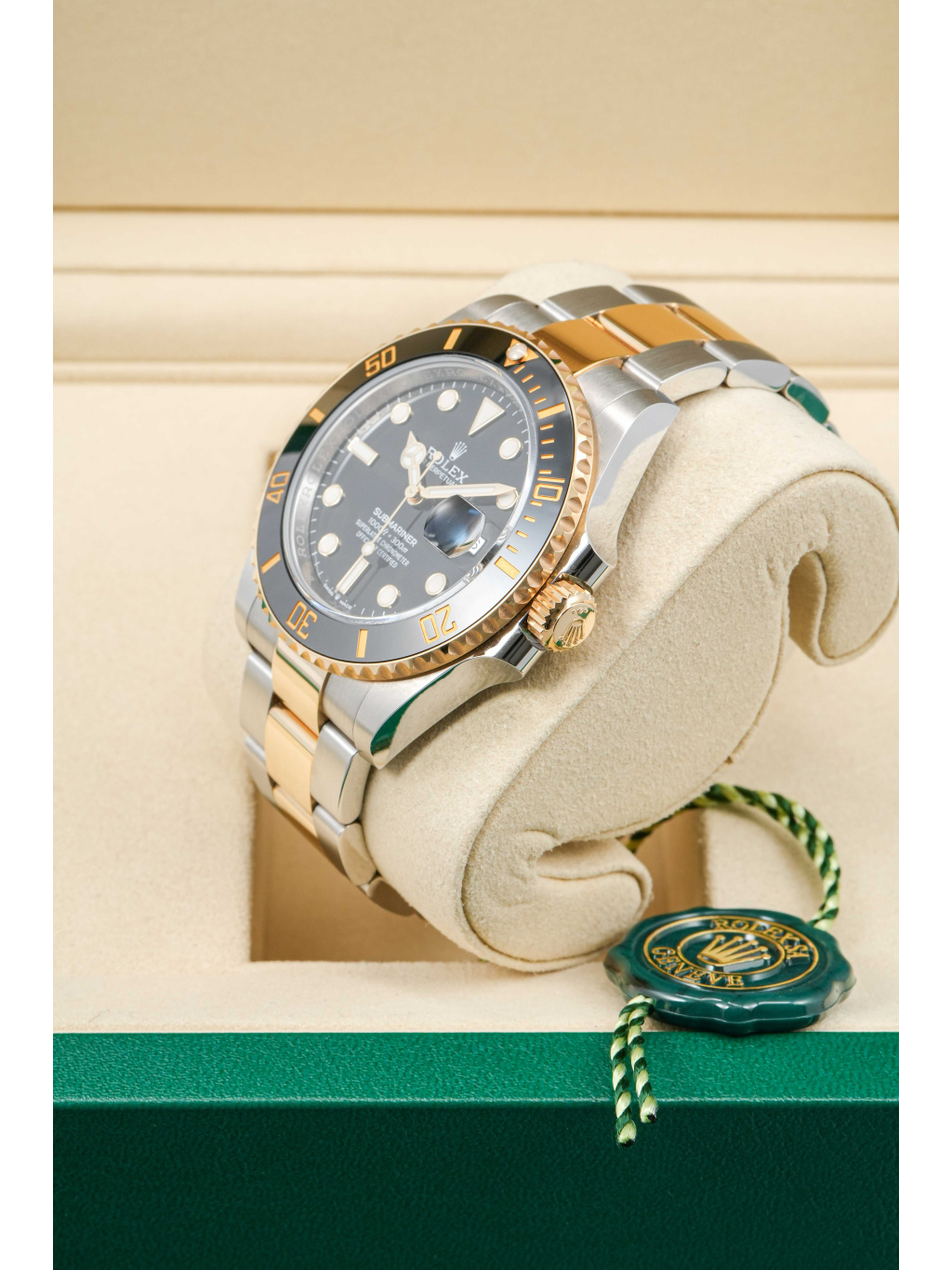 Hodinky jsou osazeny Oyster náramkem s kombinací ocelových a zlatých článků, doplněným o sponu Oysterlock a systém Glidelock, který umožňuje jemné prodloužení bez použití nástrojů – ideální i přes potápěčský oblek.